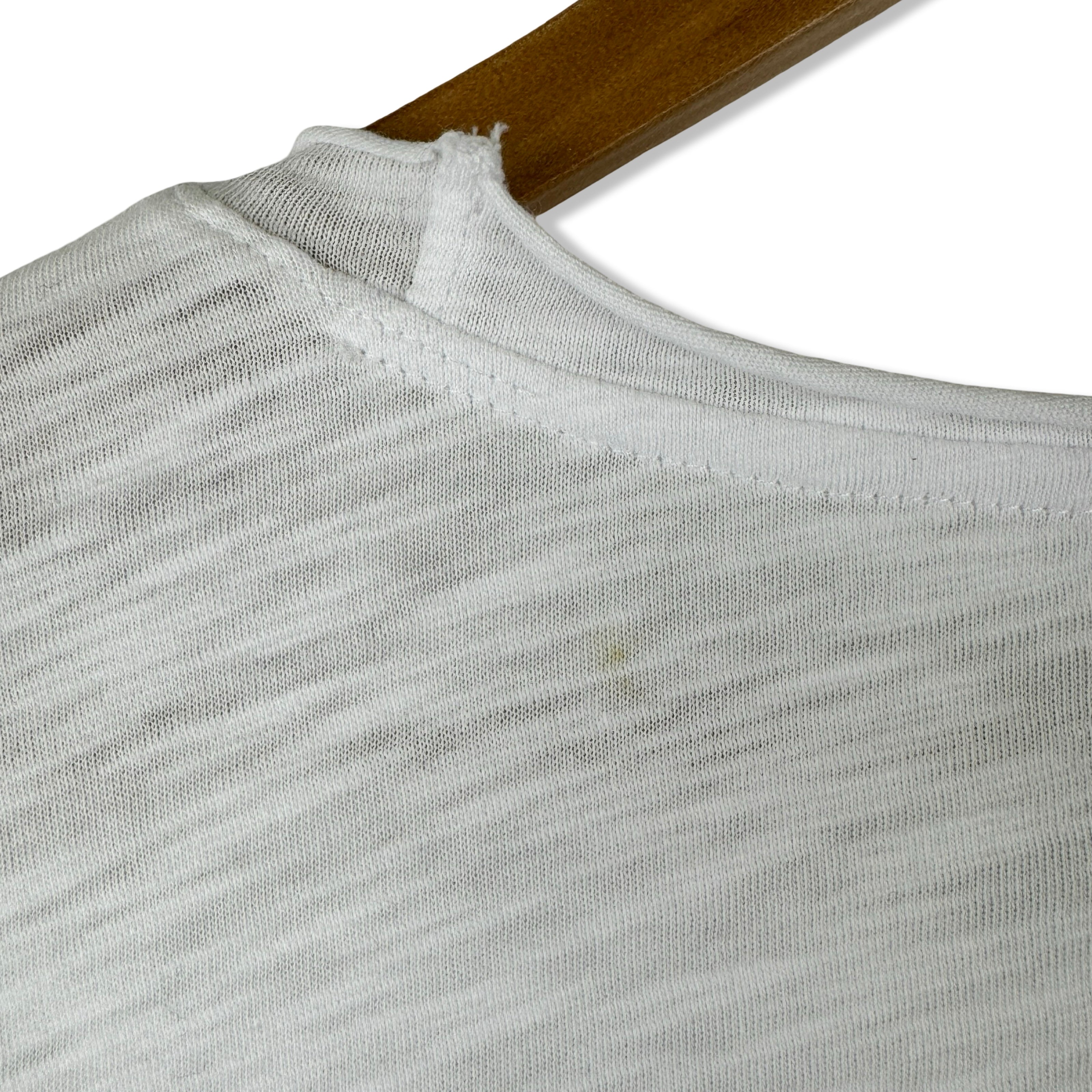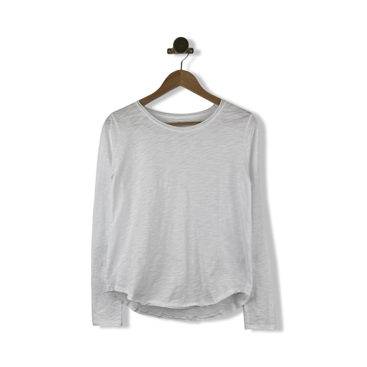 - Long sleeve top with raw hem. Signs of wear (pictured)
