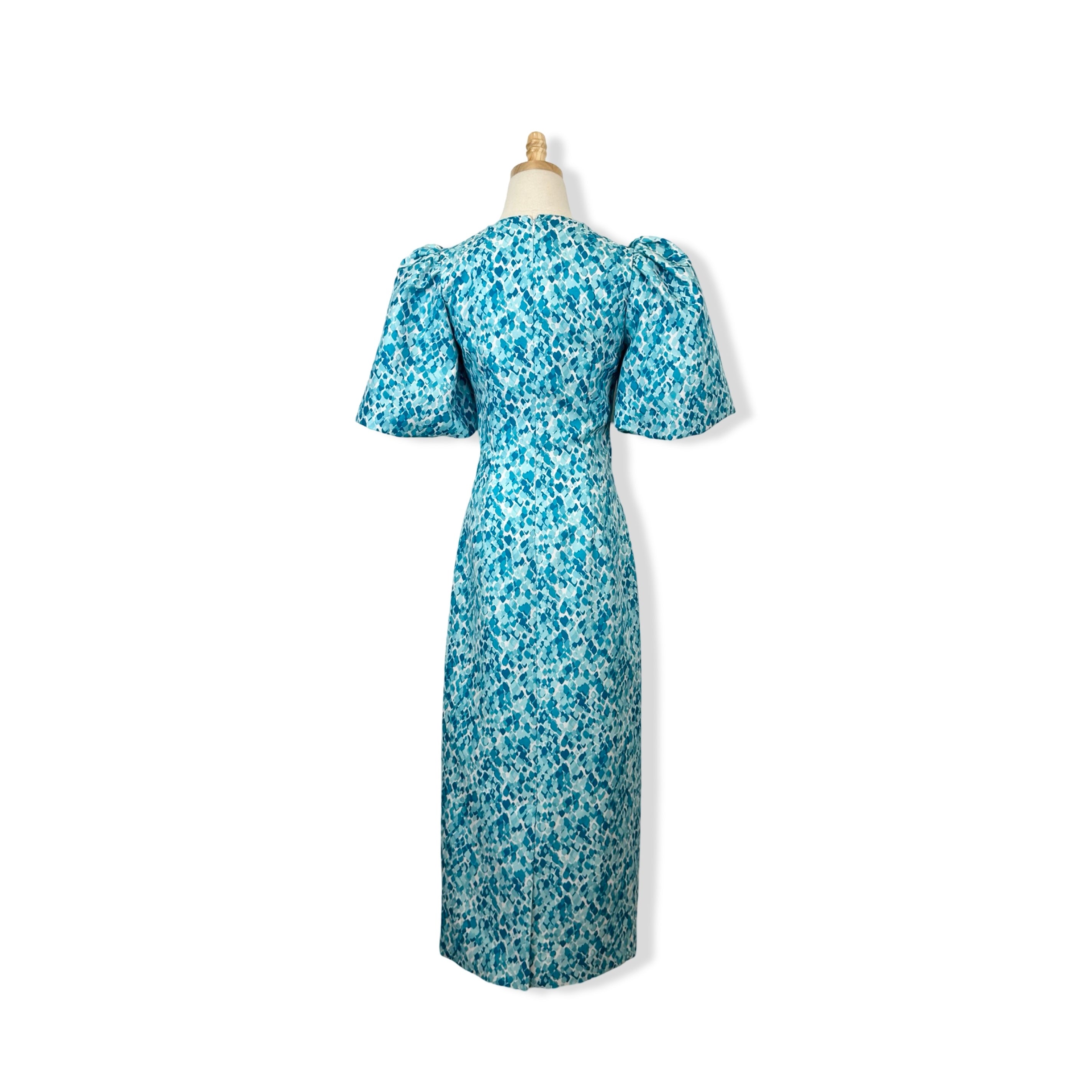 Exquise Blue Patterned Puff Sleeve Maxi Dress
