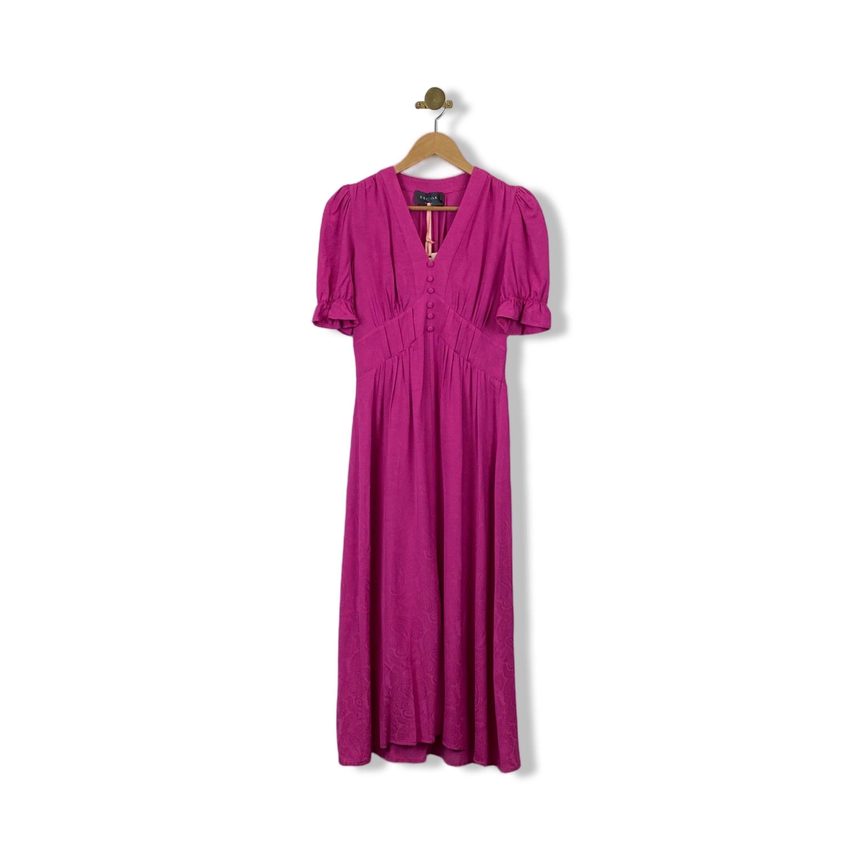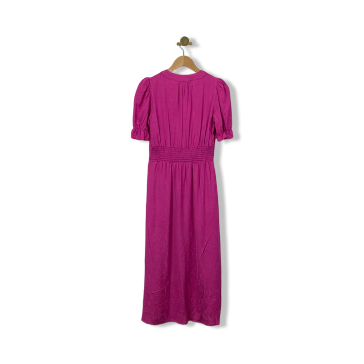 - This dress features a classic A-line design, with puffed sleeves and a smocked waistband on the back. The paisley print covers the entire garment.