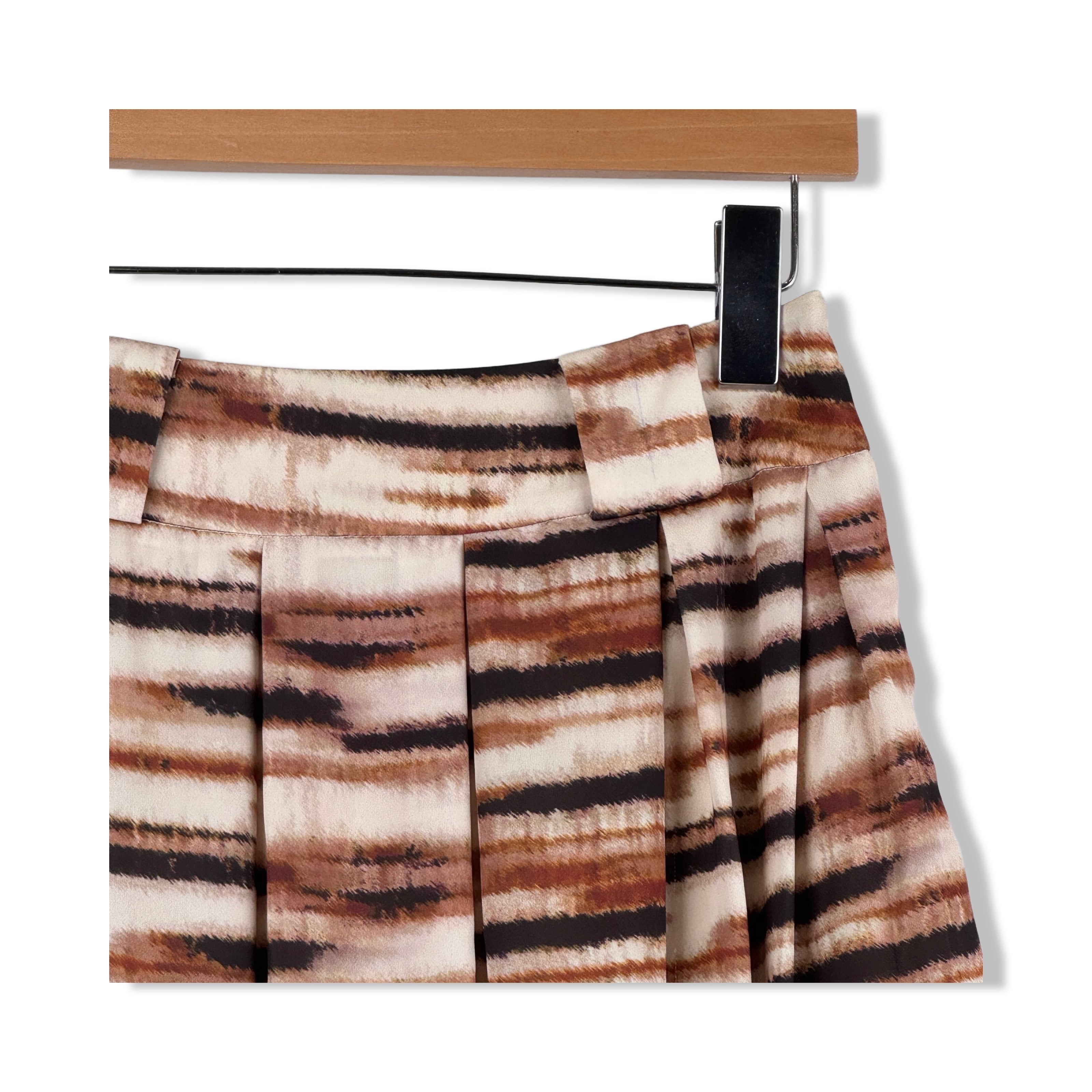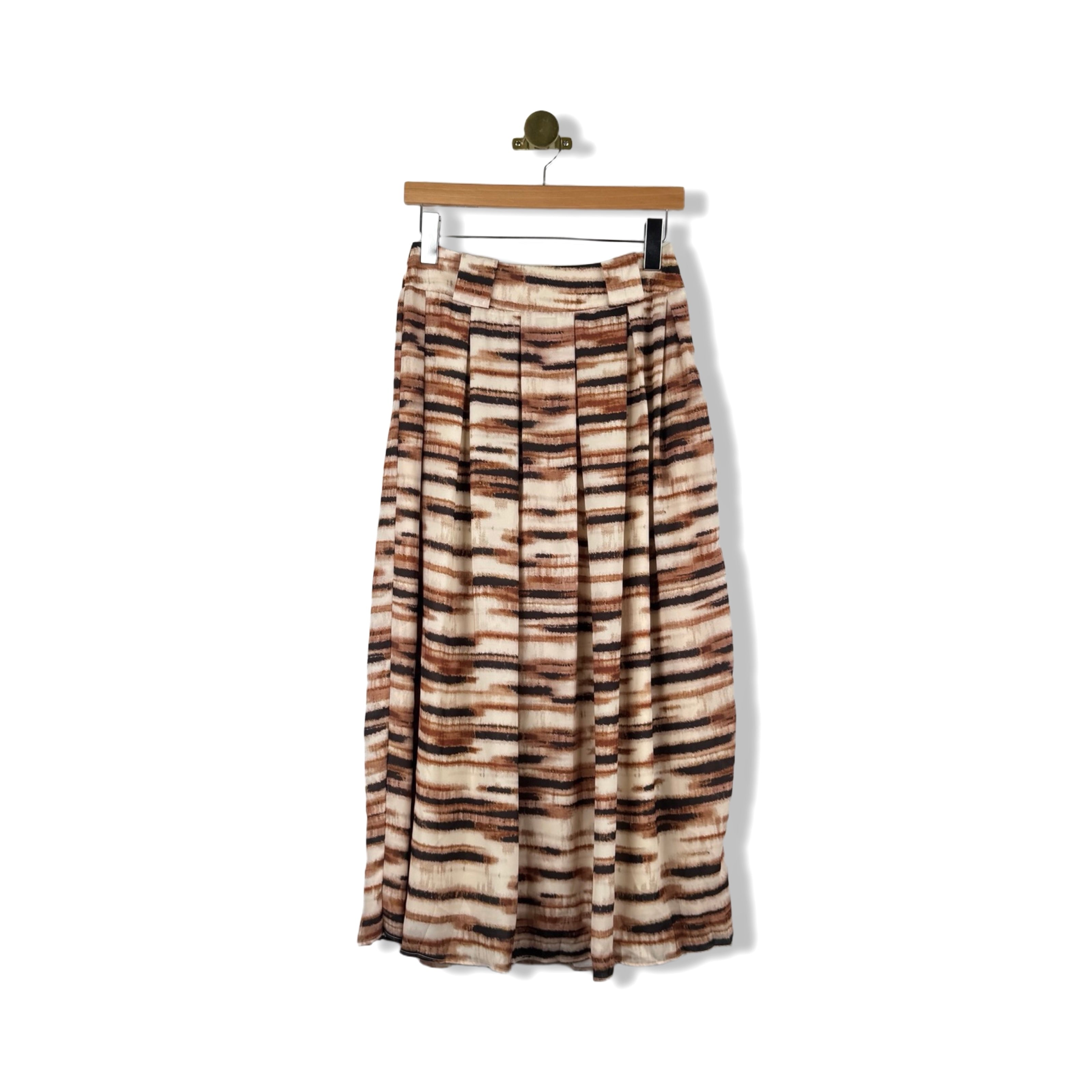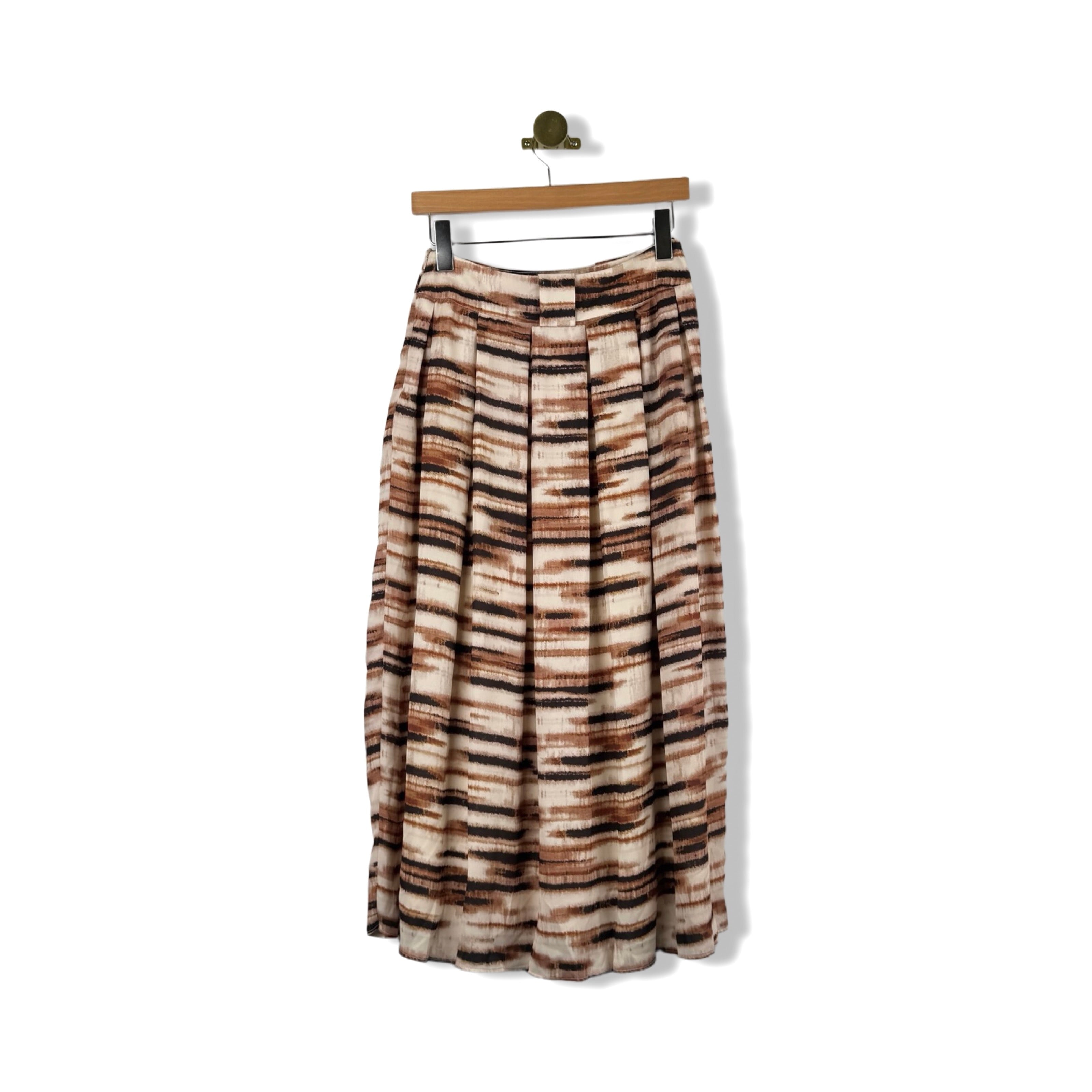 - Pull on midi skirt with pleated detail throughout skirt, side seam zip closure and belt loops.