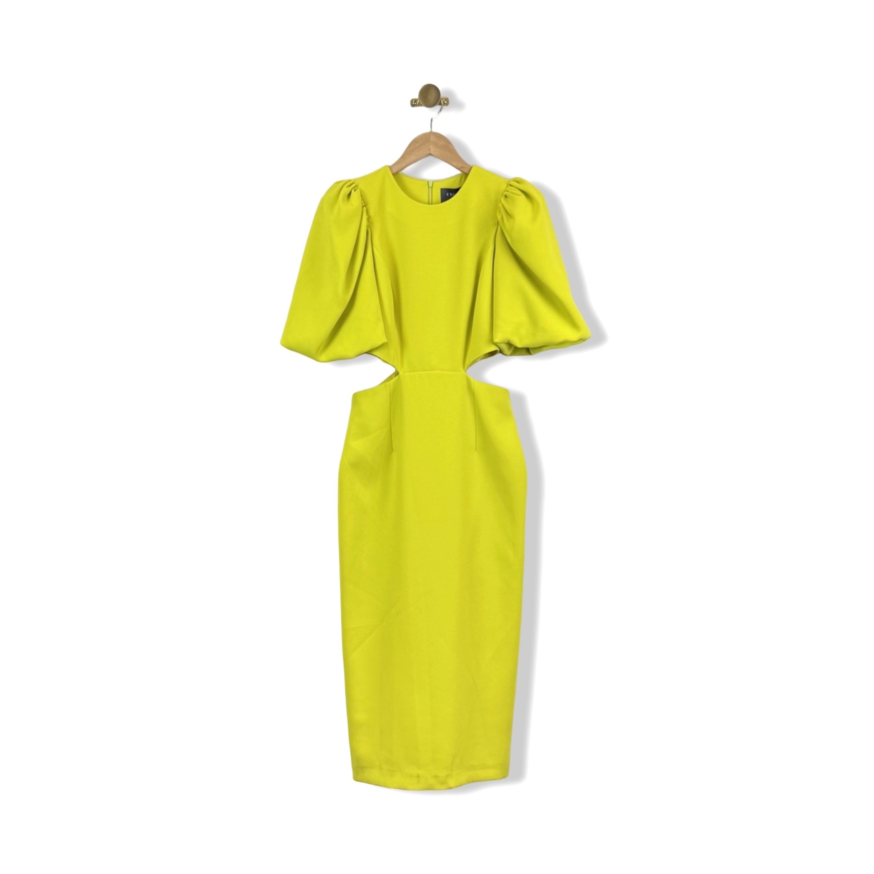 - Cut-out dress with puff short sleeves, and zip closure on back. Signs of wear (pictured)