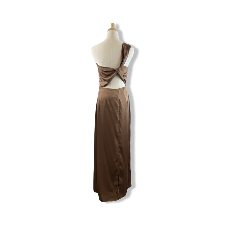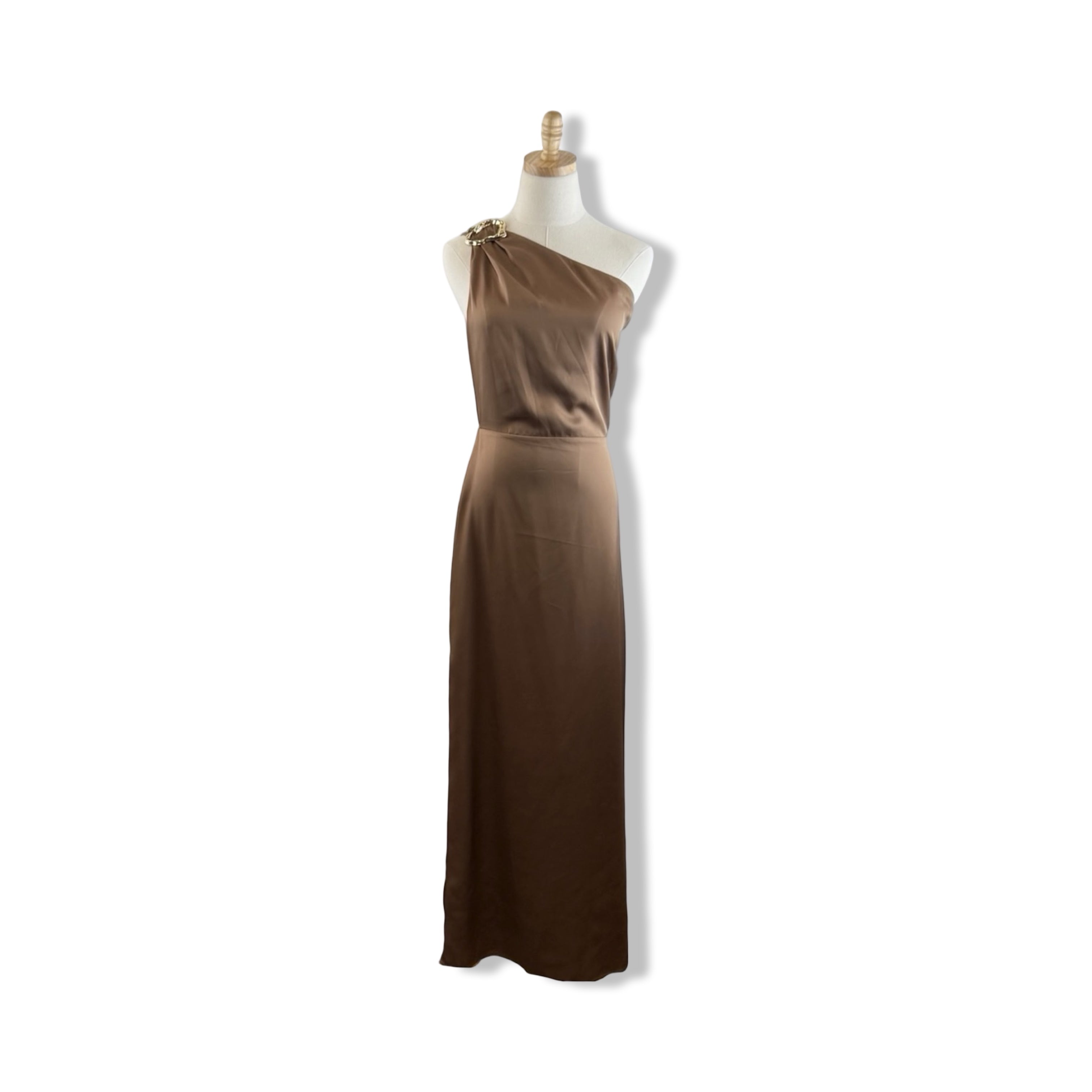 - Single strap maxi dress with metal hardware detail and side zip closure
