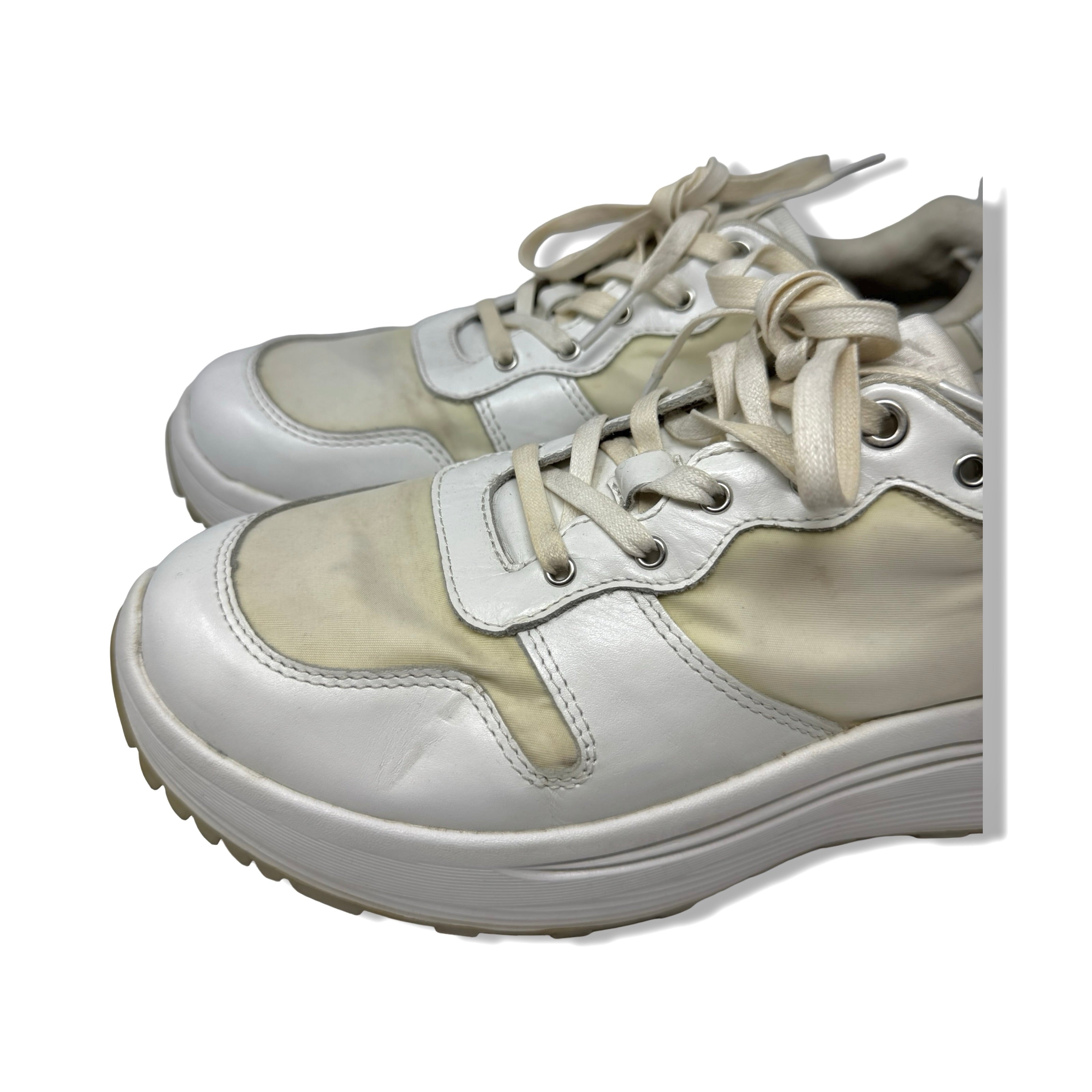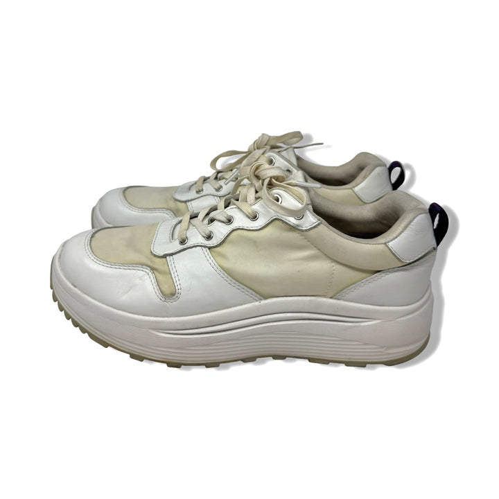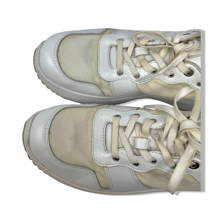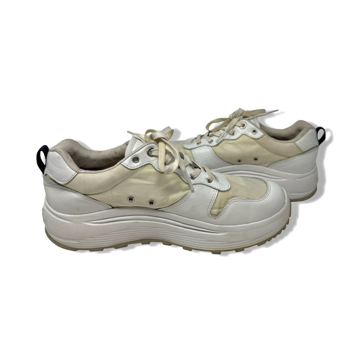 - Lace up sneakers with nylon and leather panels throughout. Signs of wear throughout (pictured).
