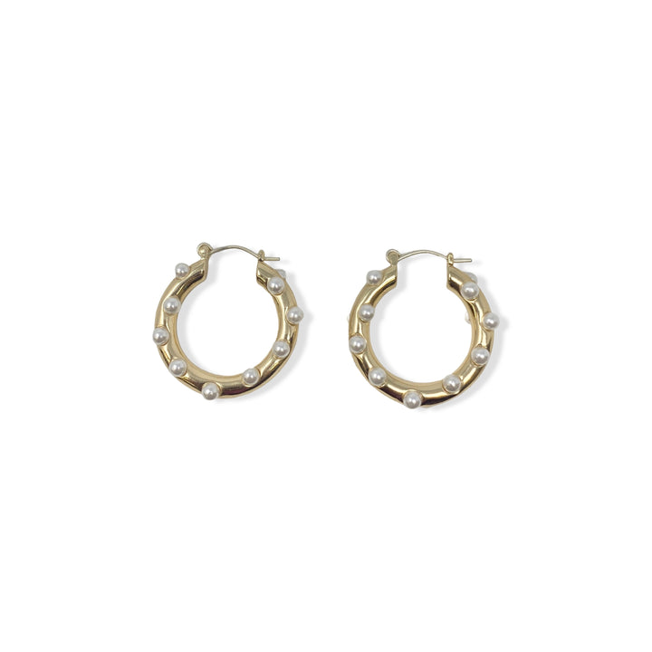 - Faux Pearl Studded Hoop Earrings offer a classic and sophisticated touch to any outfit. Featuring elegant studded details, these earrings are a stylish addition to your collection.