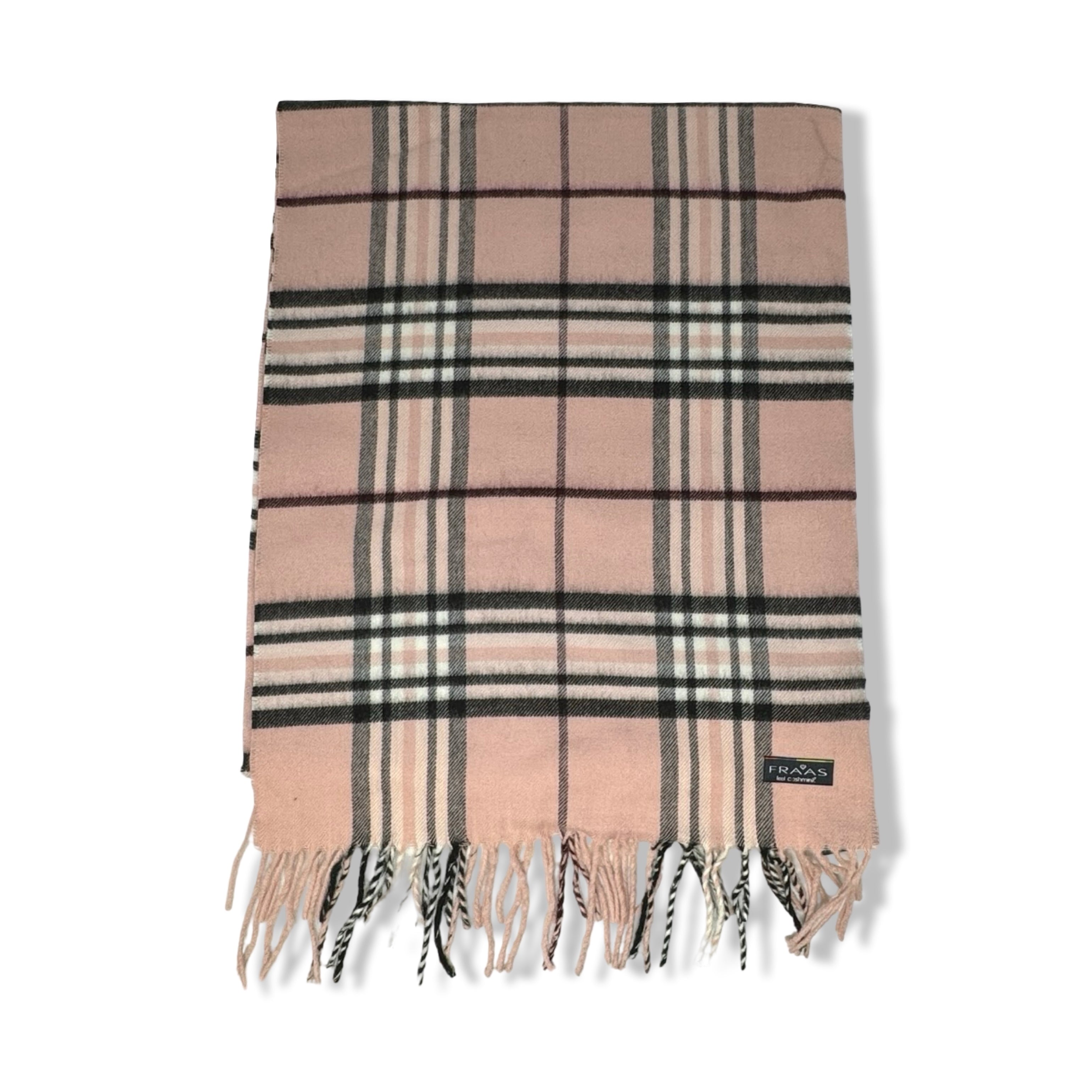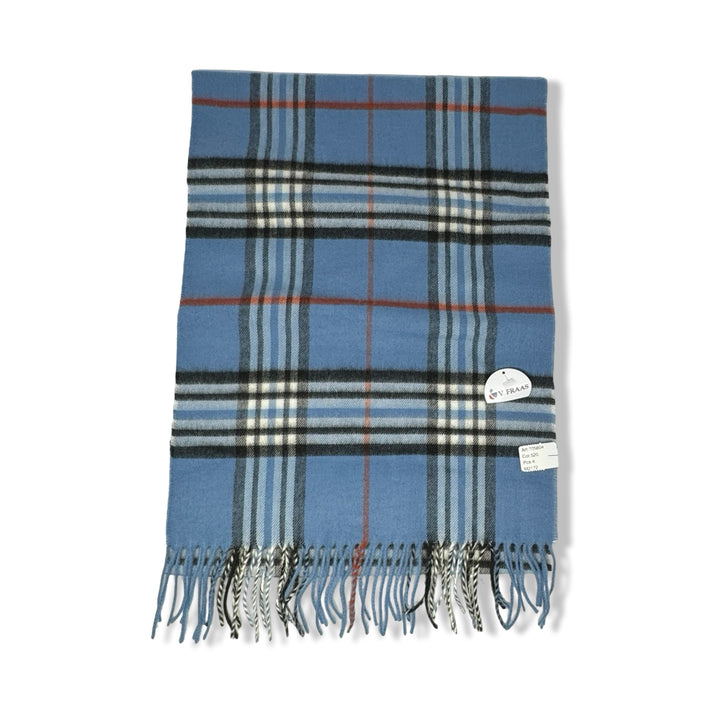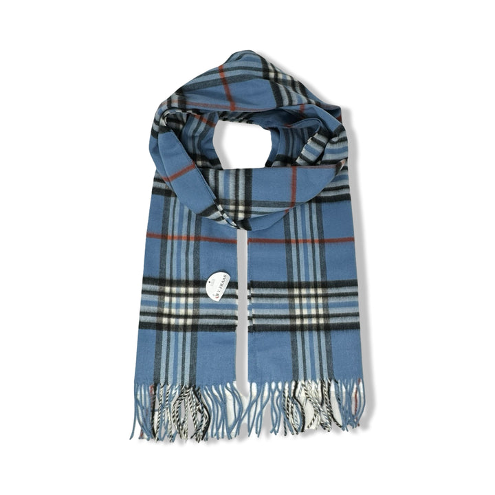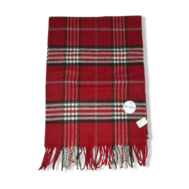 - Plaid scarf with fringes on ends