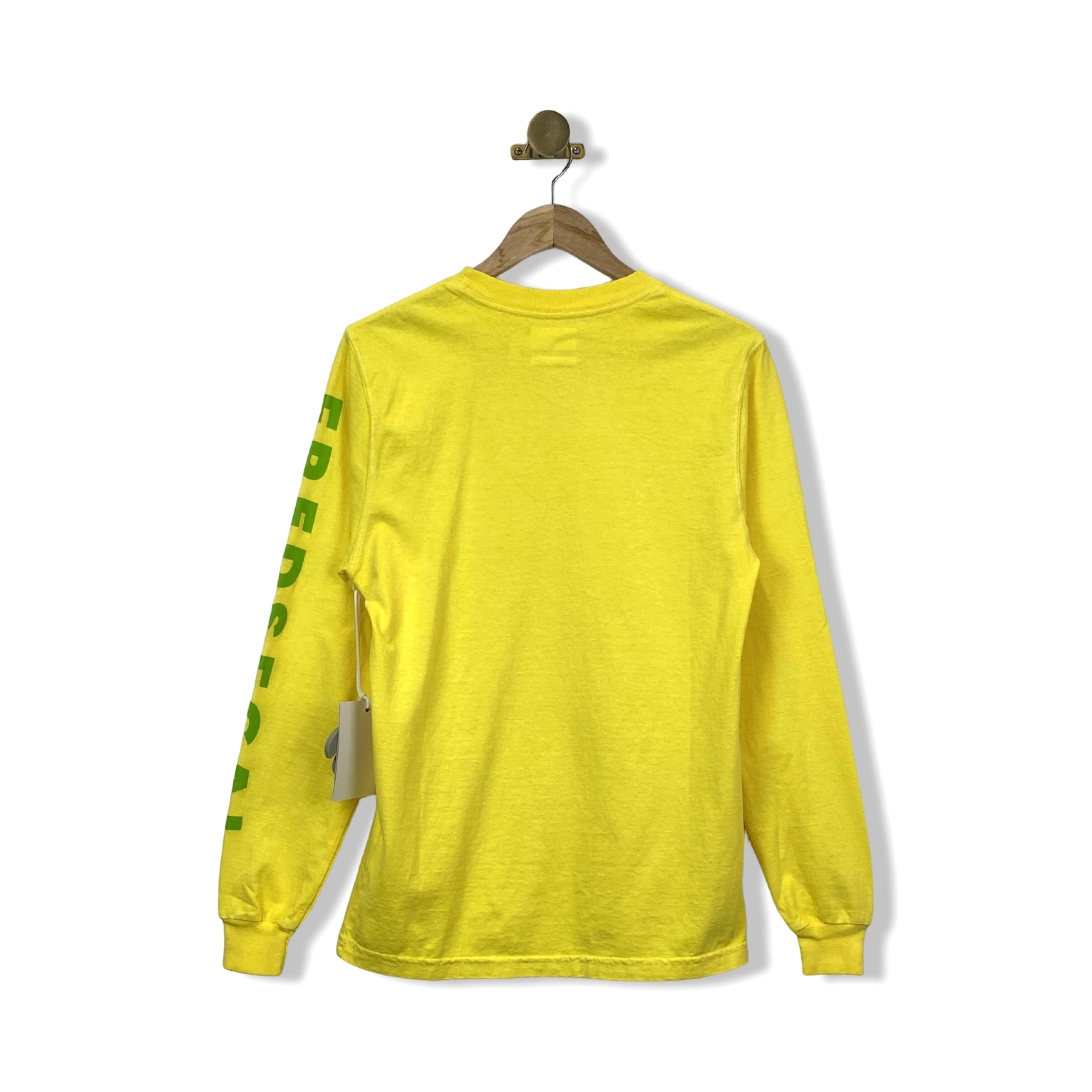- Long sleeve t-shirt with logo on sleeves. Labeled size 0, 1, 2, and 4; approx. size US X-Small, Small, Medium, and X-Large. Labeled in US Men's Sizing. Some dye transfer throughout shirt.