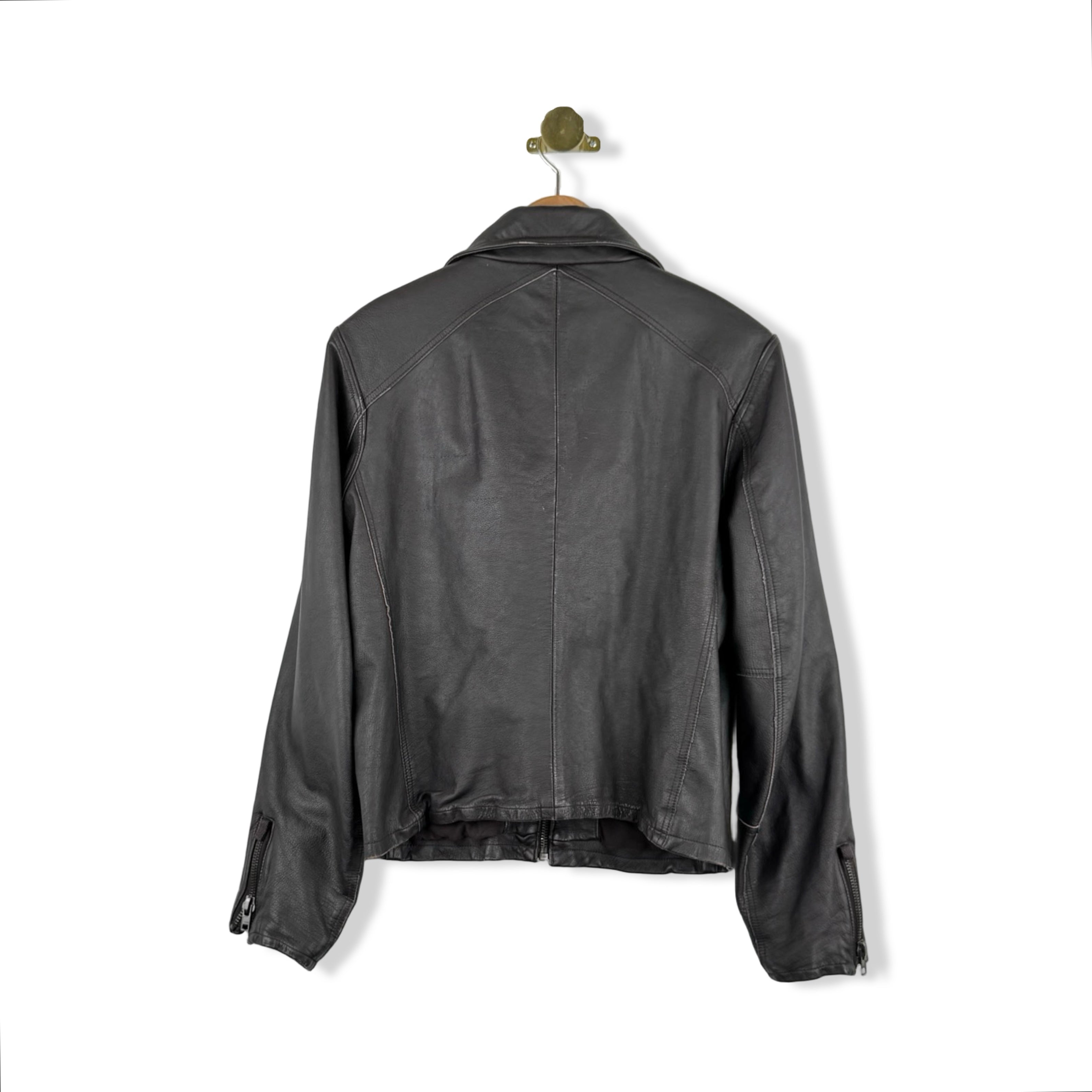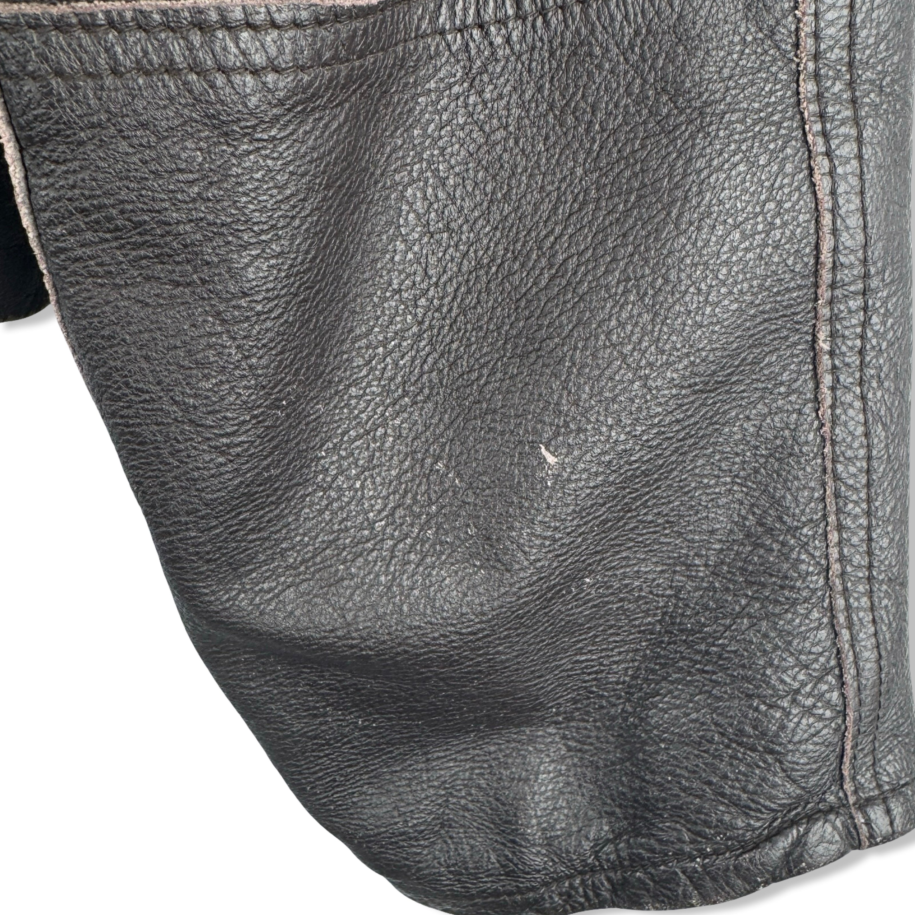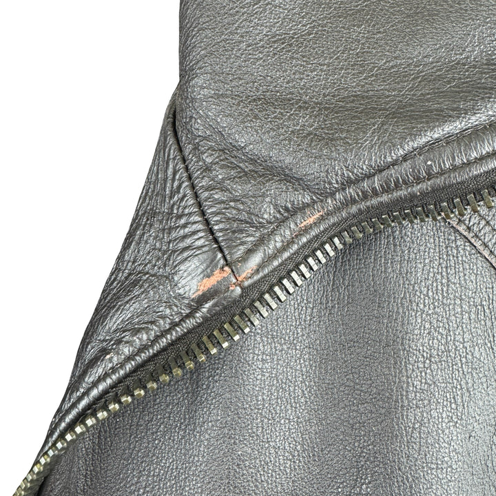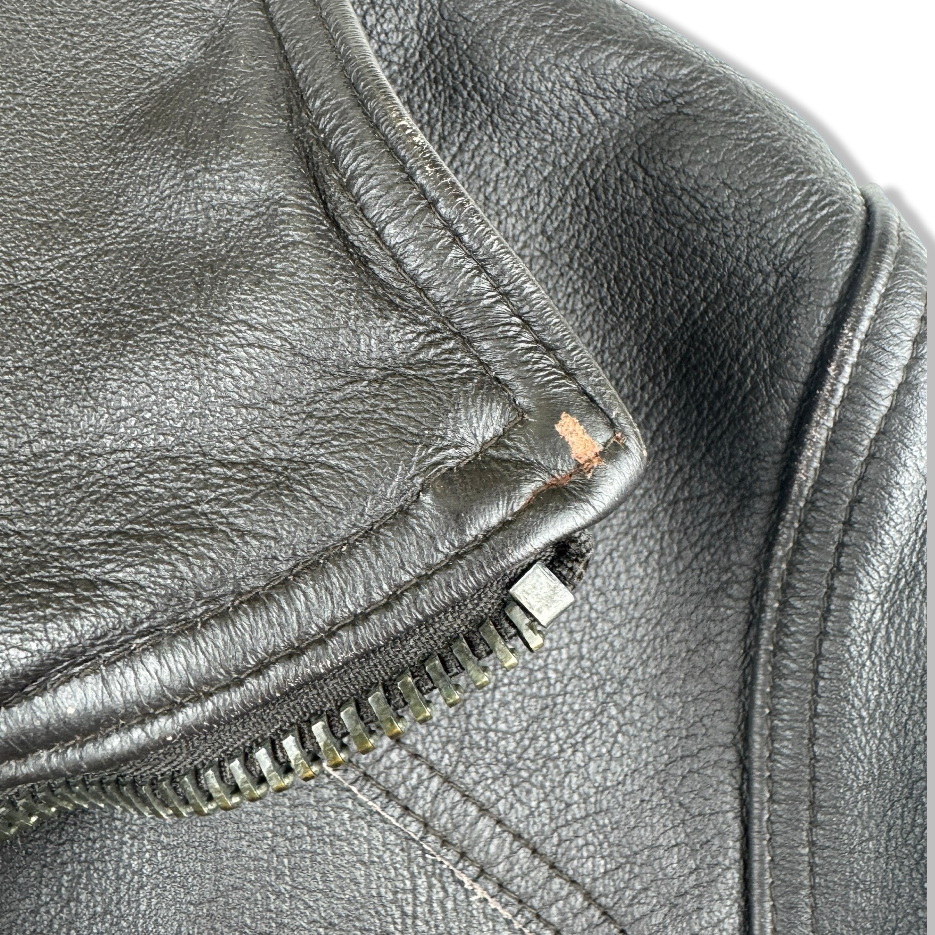 - Leather zip jacket with dual front pockets. Signs of wear (pictured)