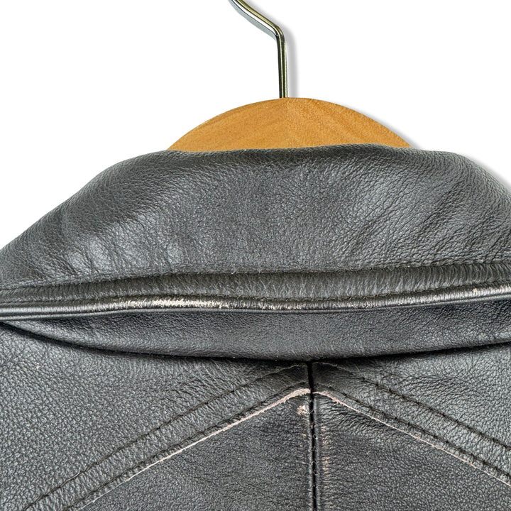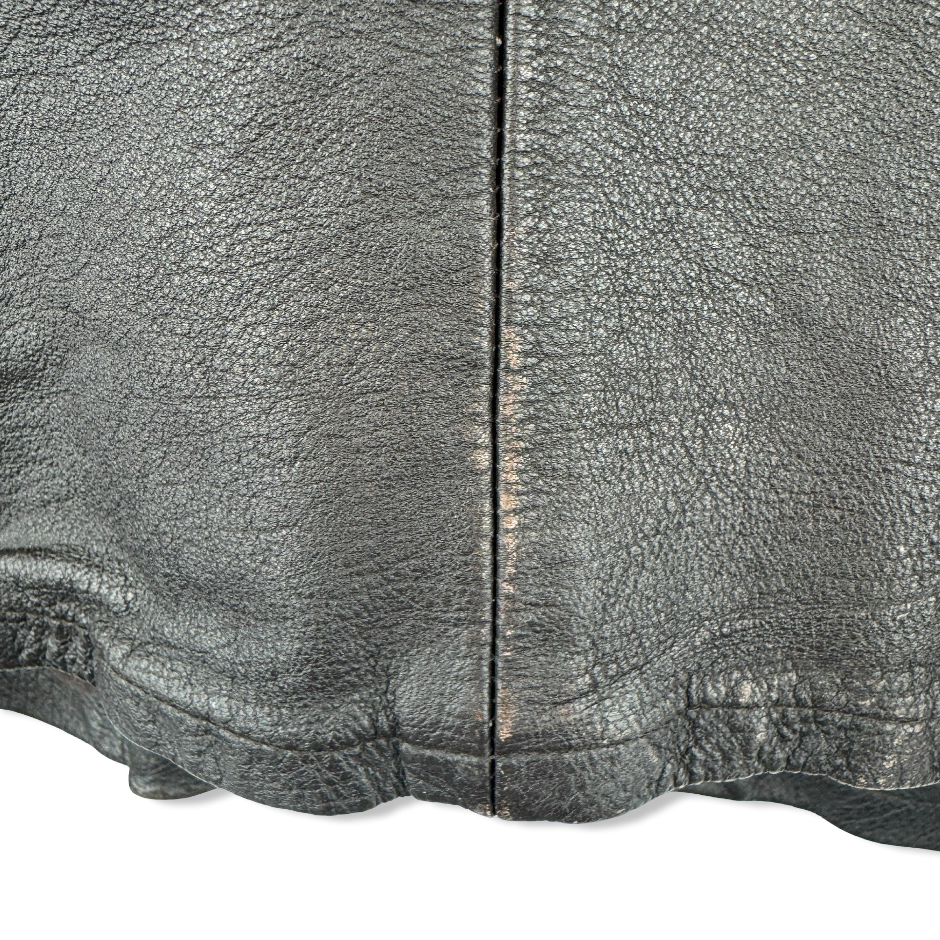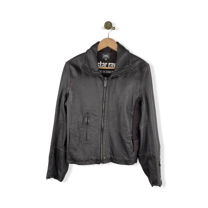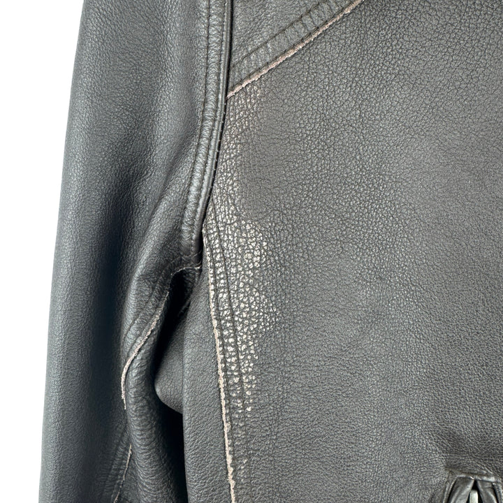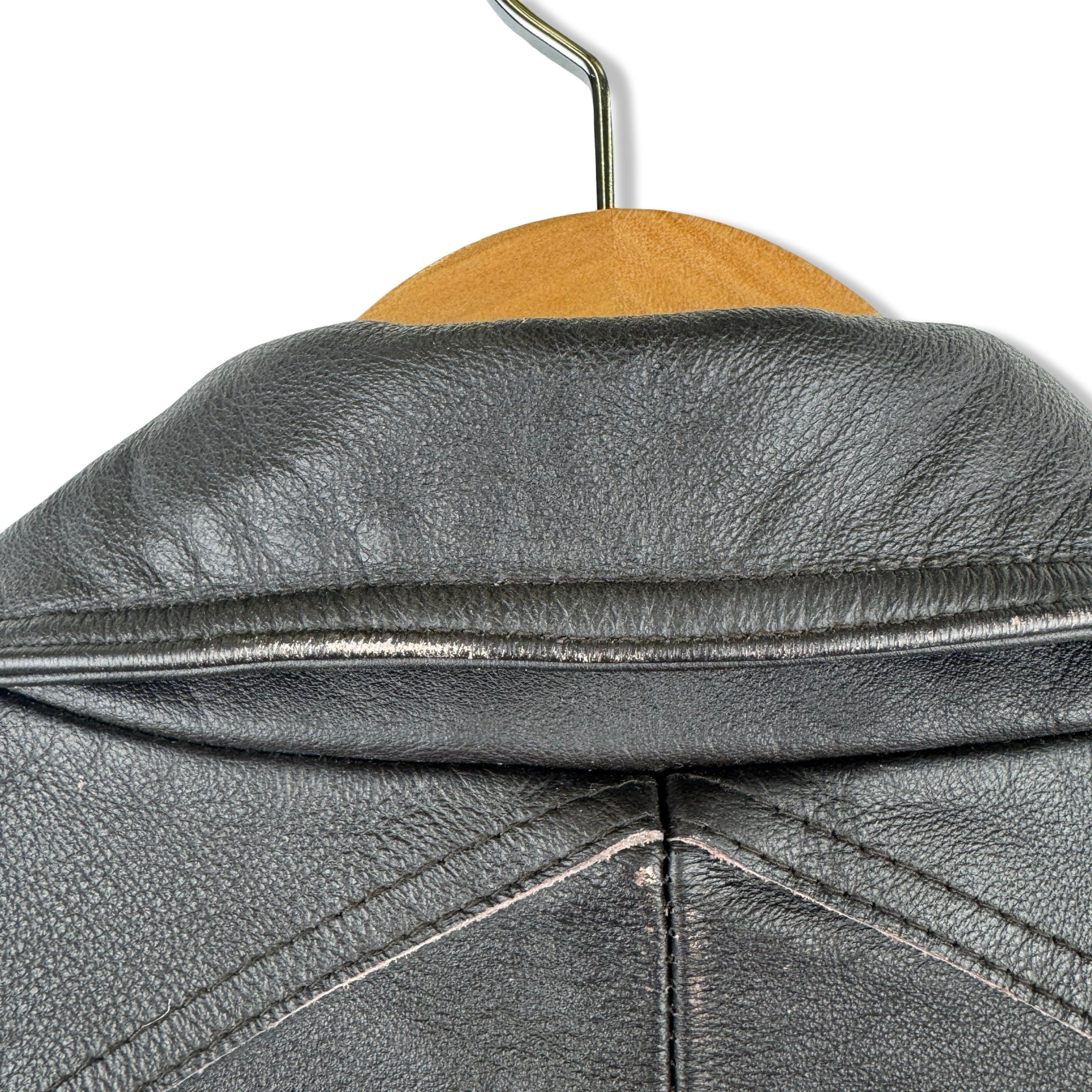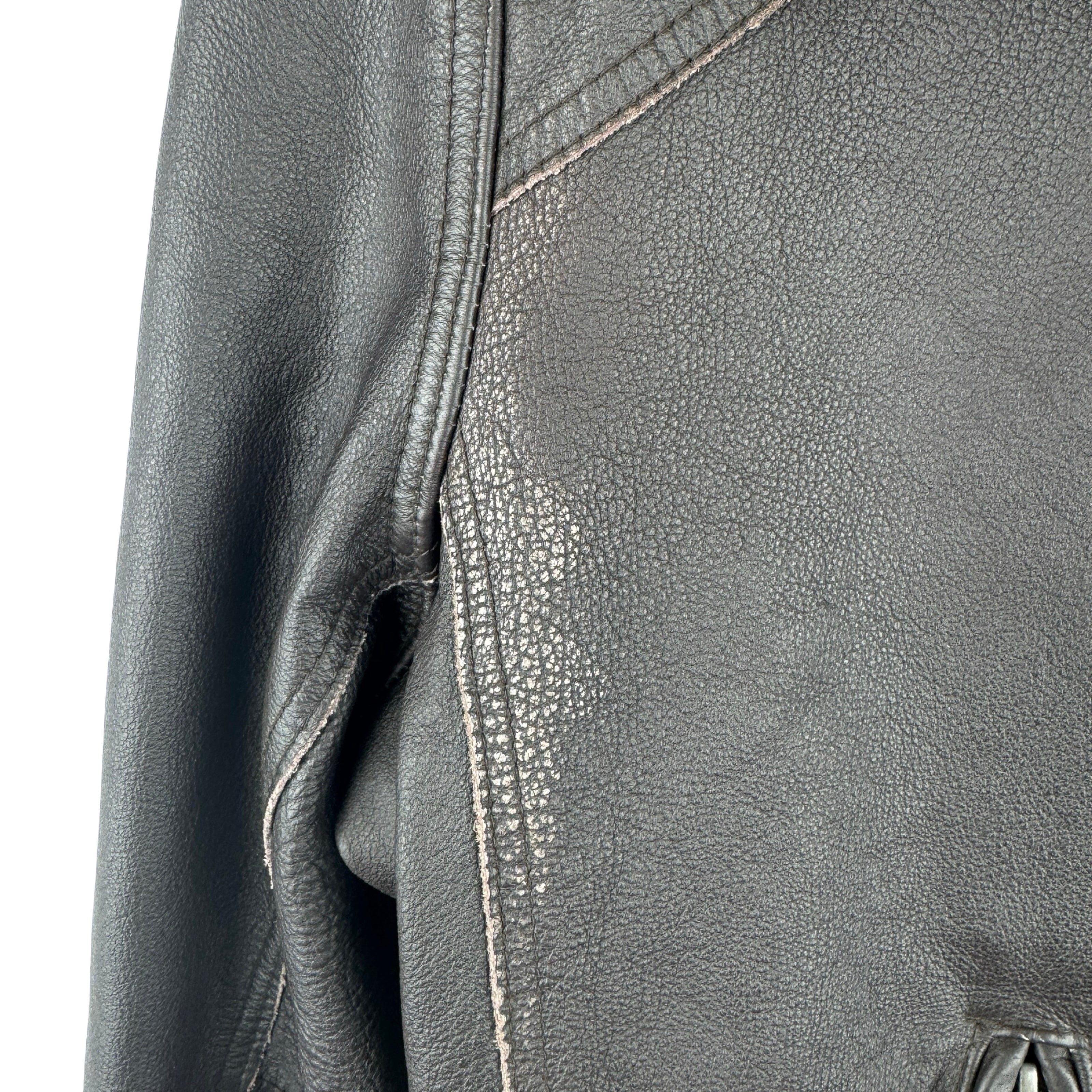- Leather zip jacket with dual front pockets. Signs of wear (pictured)