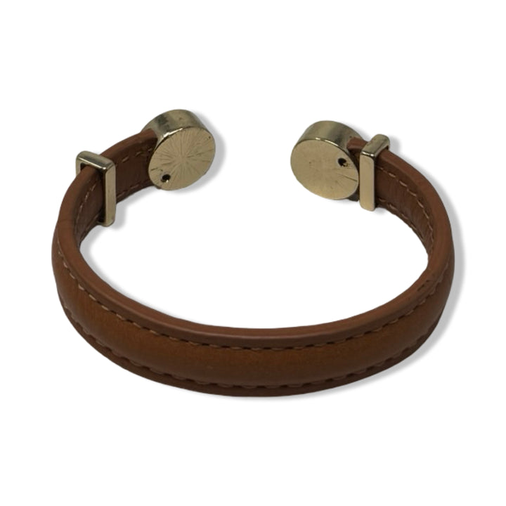 - Stretchy open cuff bracelet with rhinestone hardware trim and contrast stitching. Missing rhinestone (pictured)