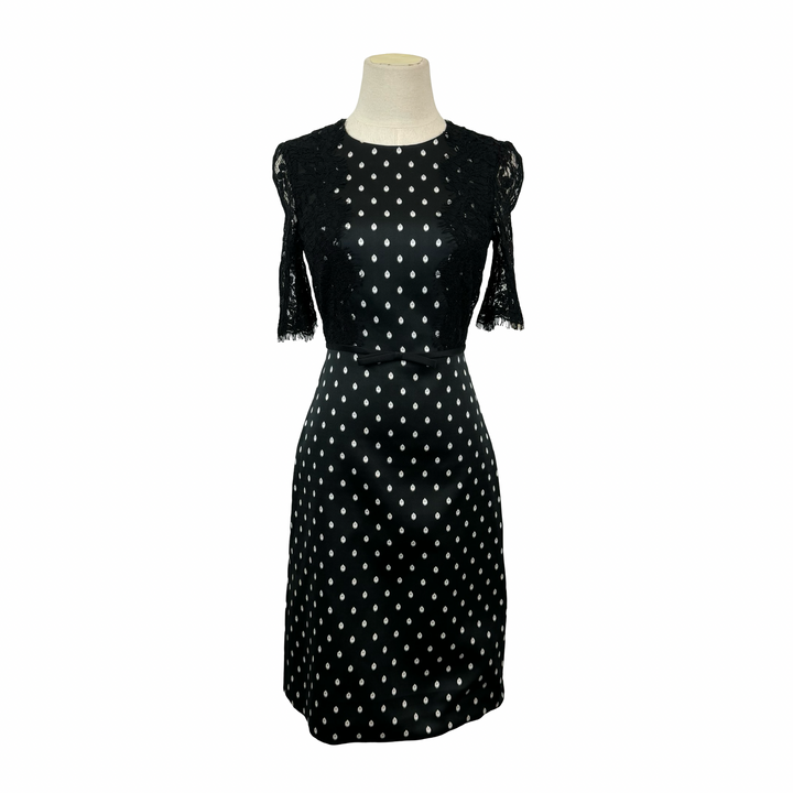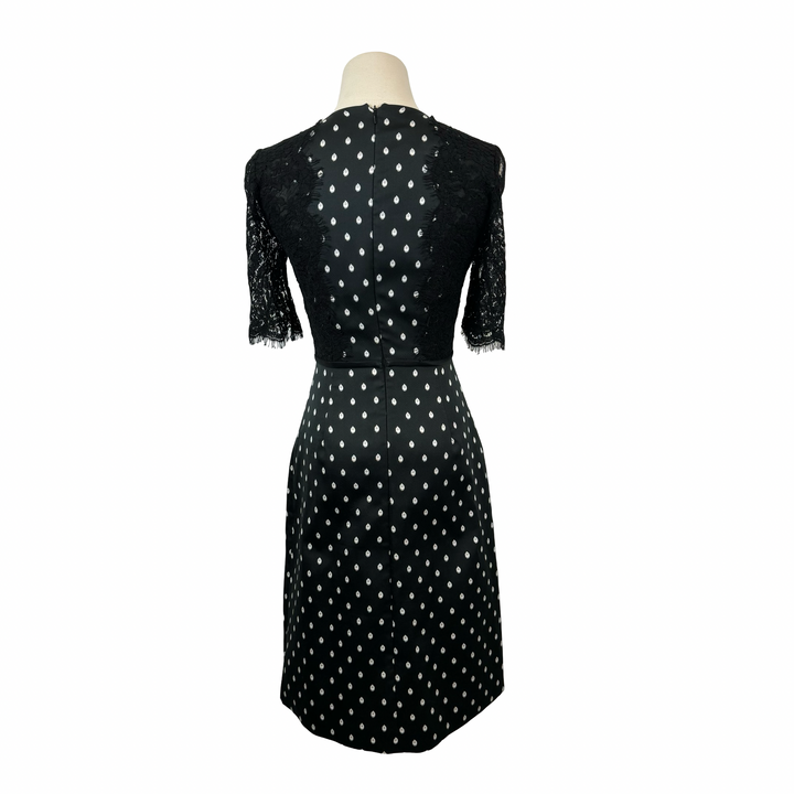 Giambattista Valli Black and White Polka Dot Embroidered Midi Dress with Lace Sleeves