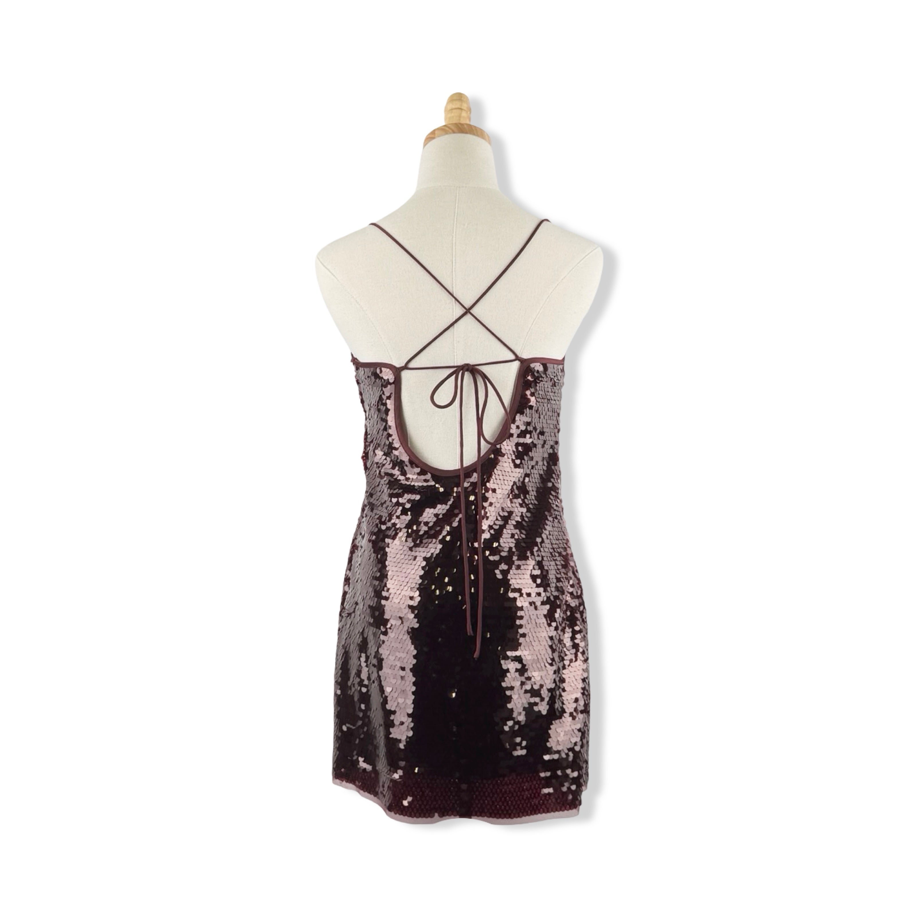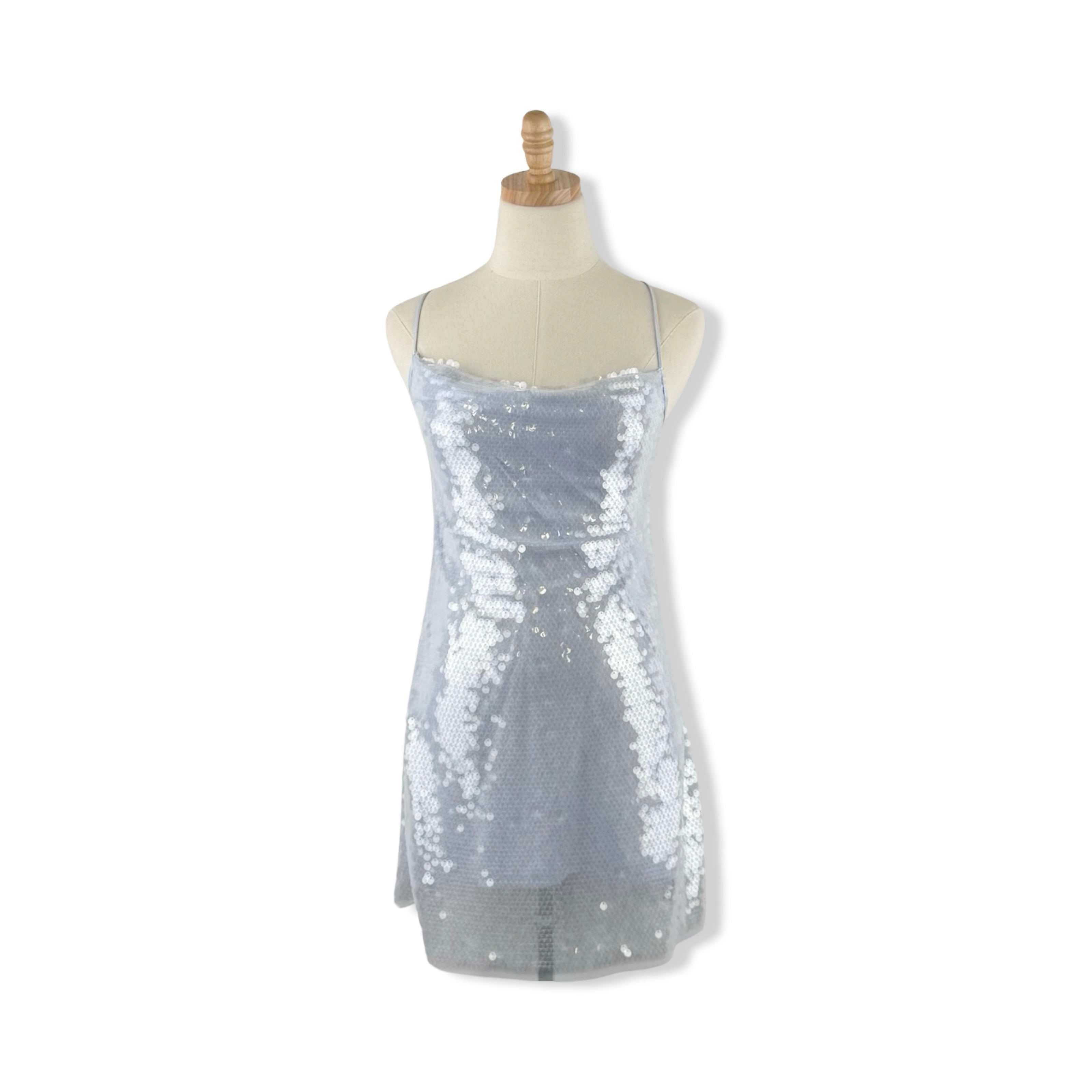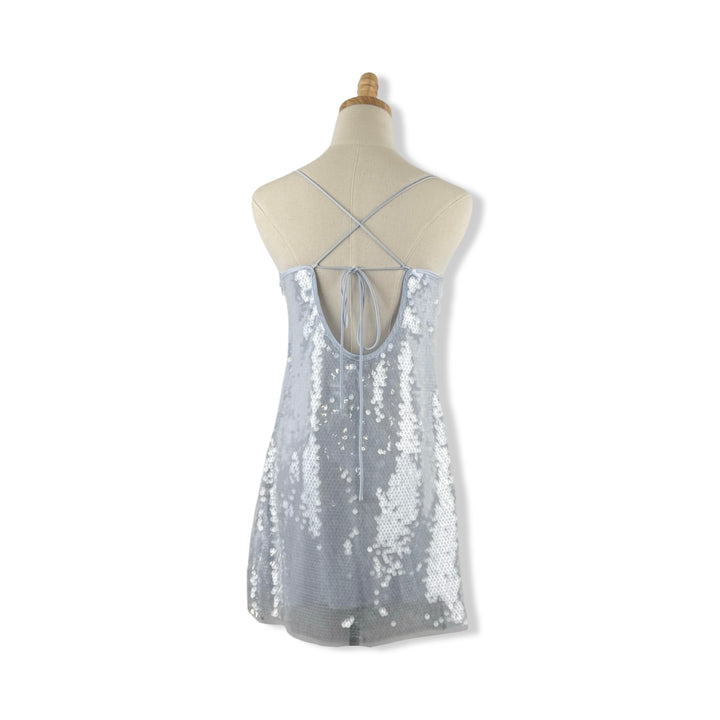 - Sequin mini dress with side zip closure and adjustable cross straps