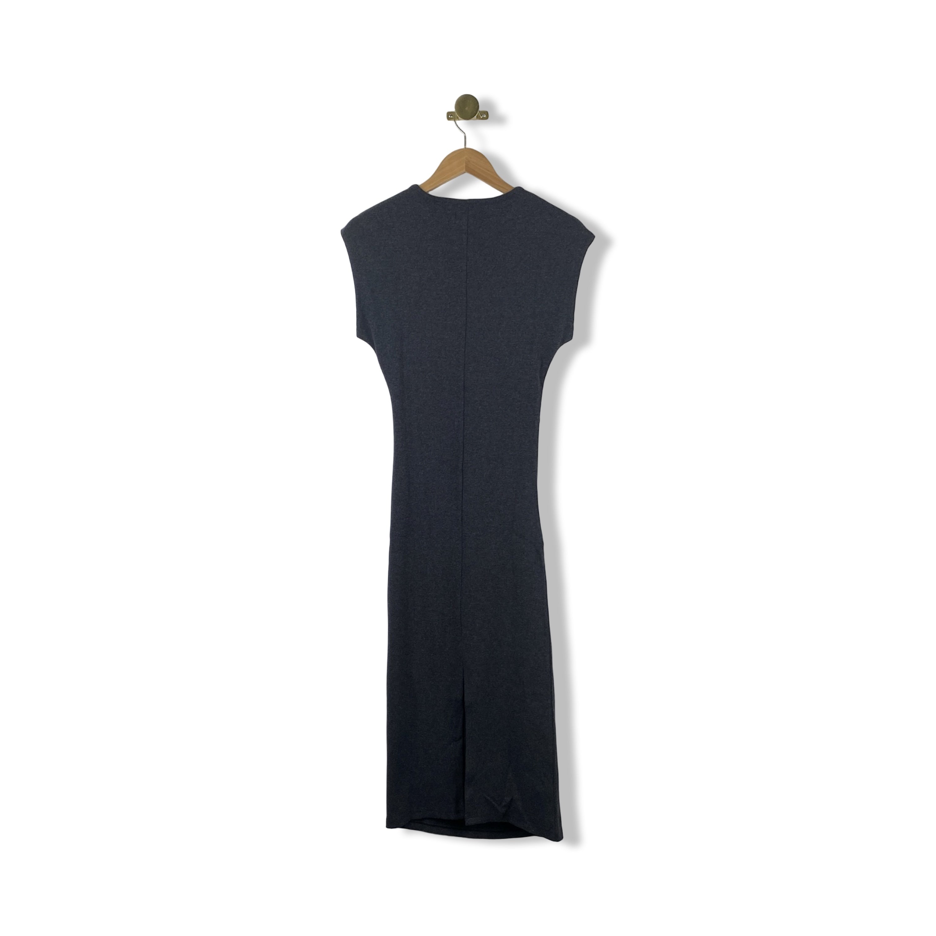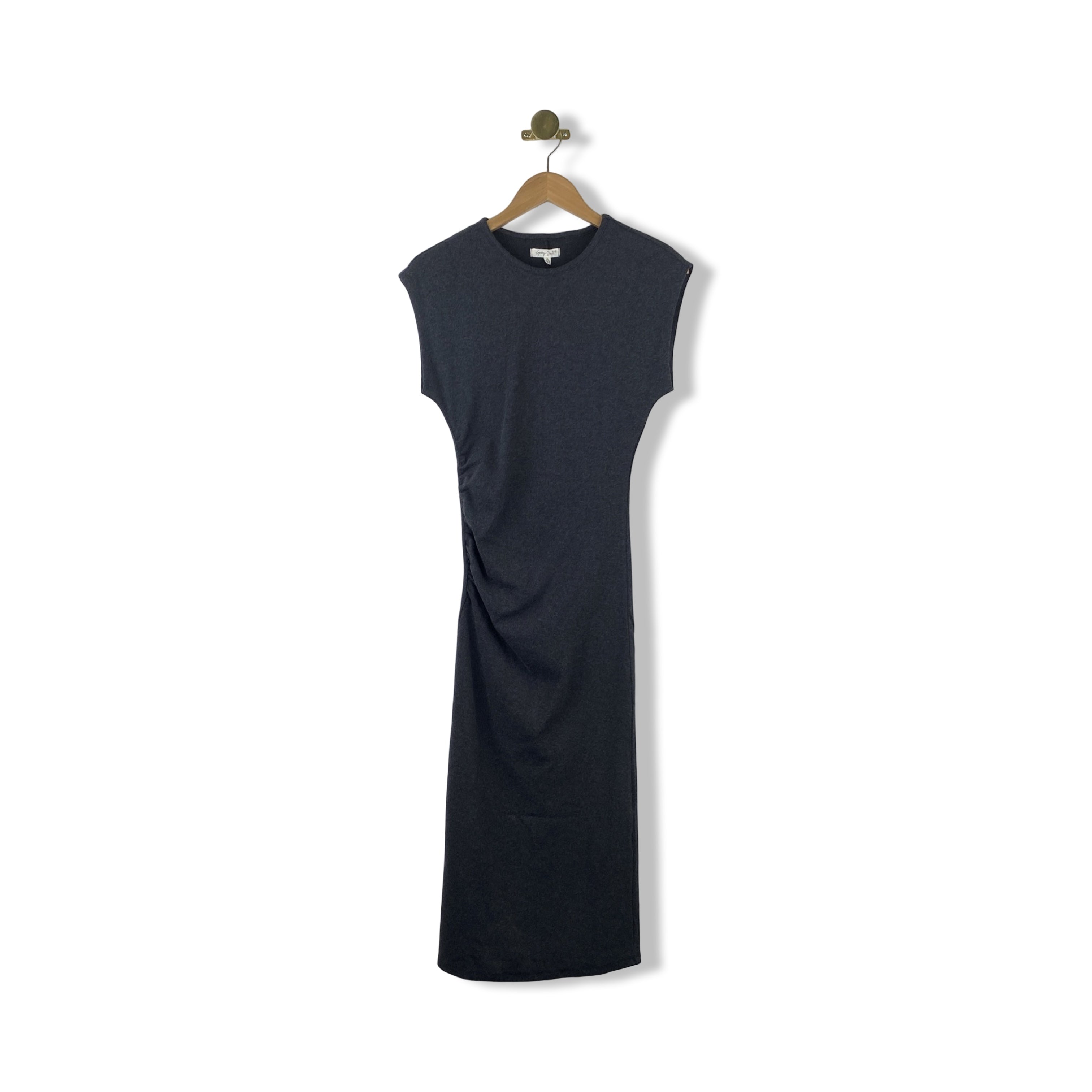 - Sleeveless ribbed midi dress with ruched sides