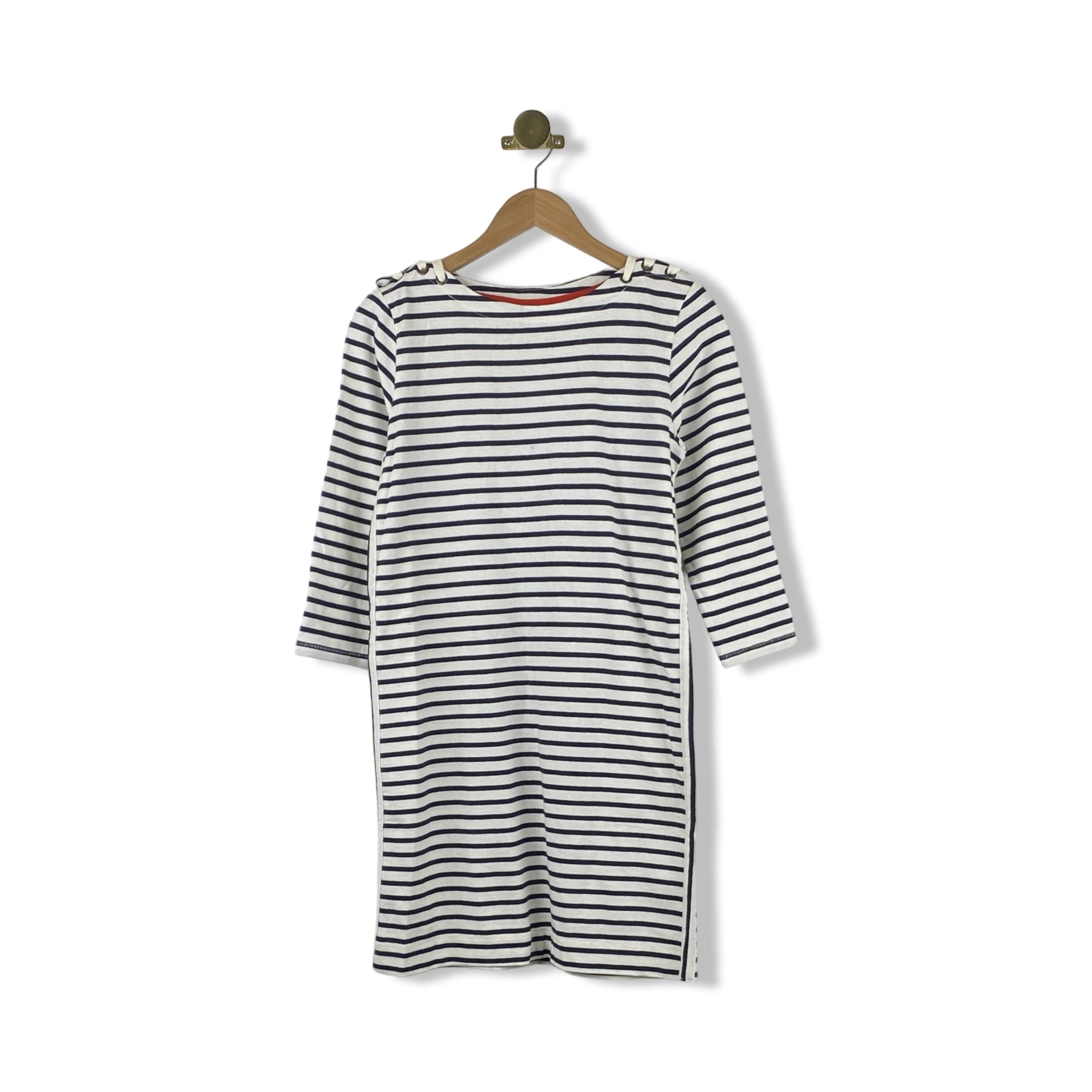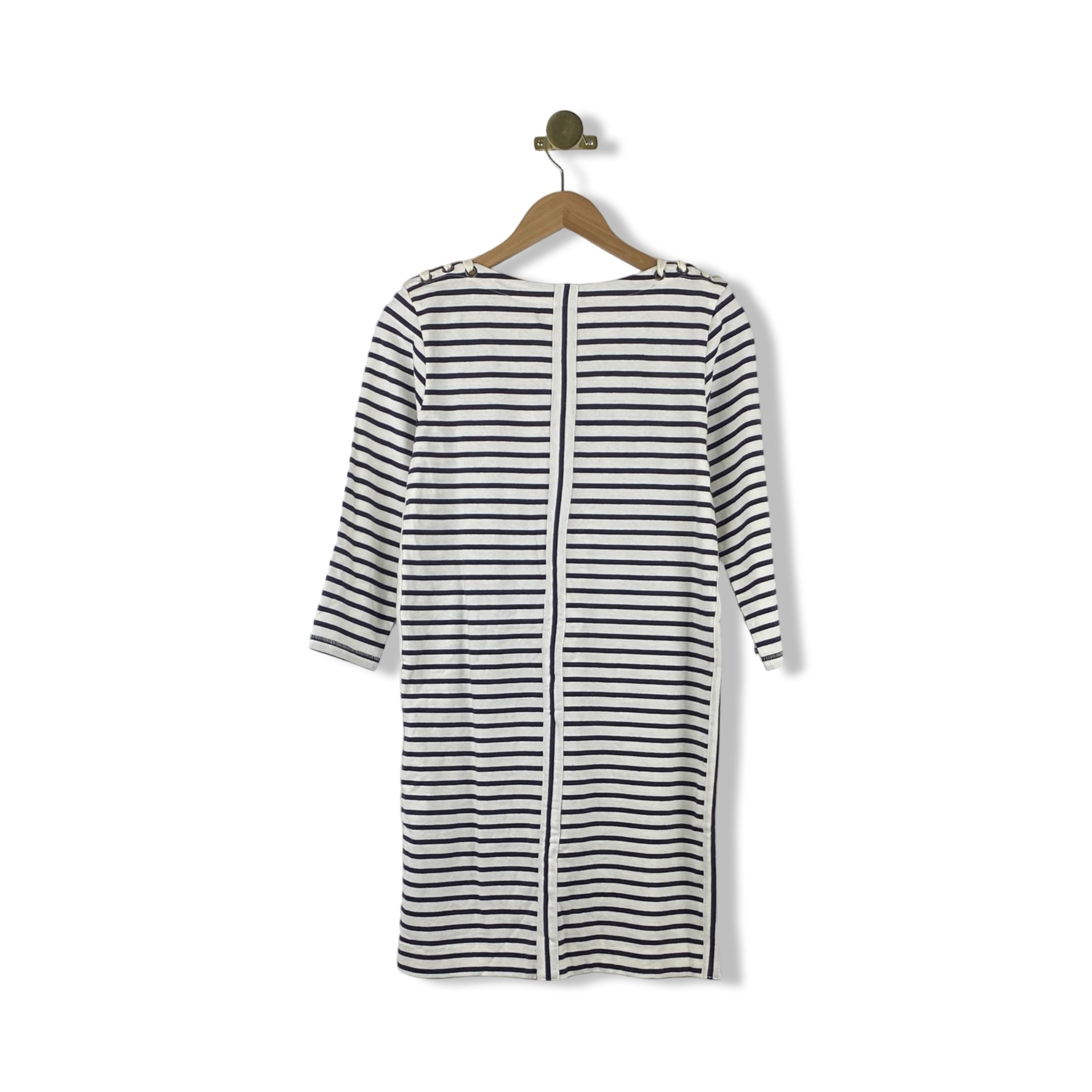 - Striped t-shirt dress with lacing at shoulders