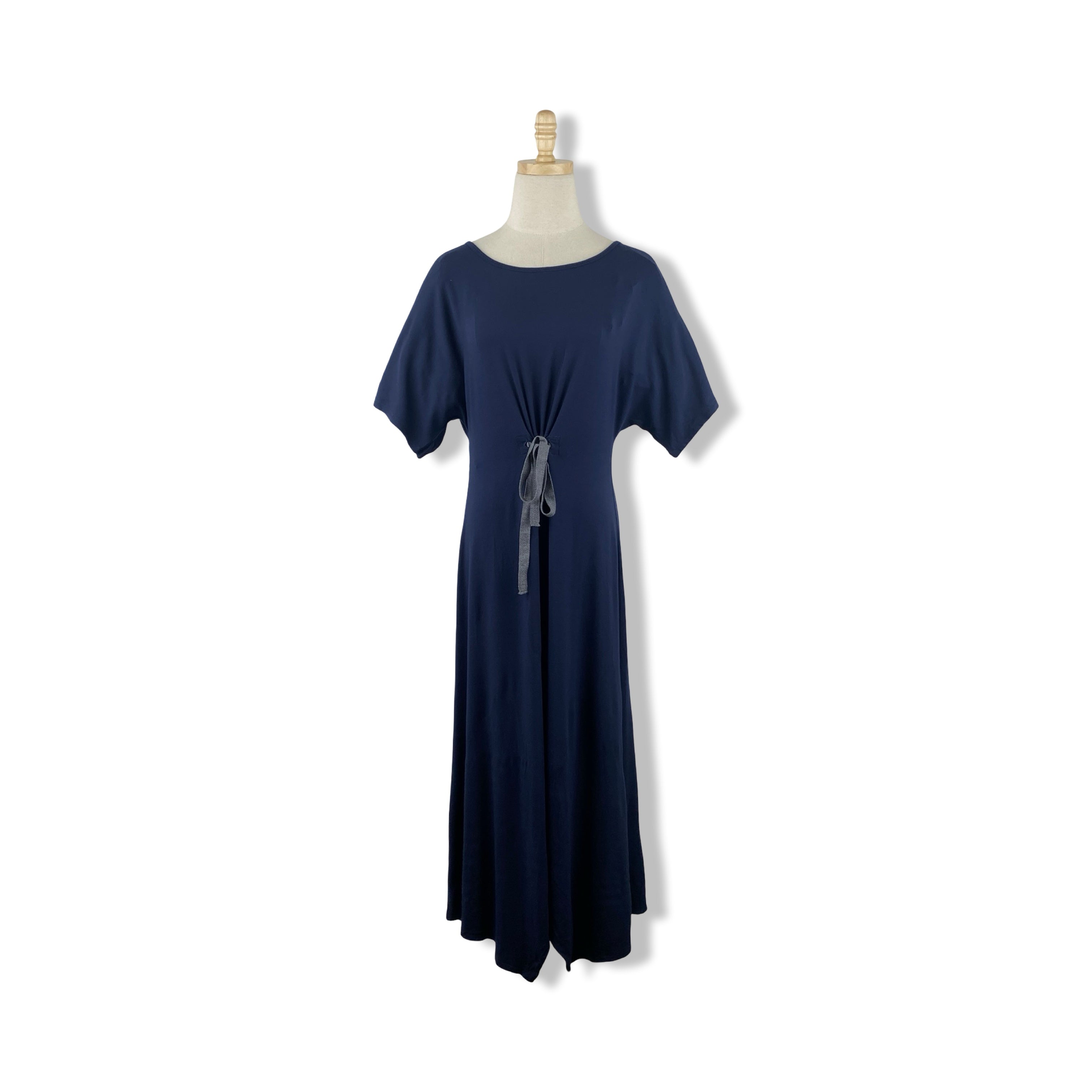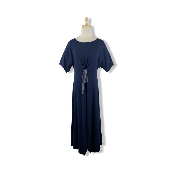 - Short sleeved flared t-shirt dress with tie detail at waist