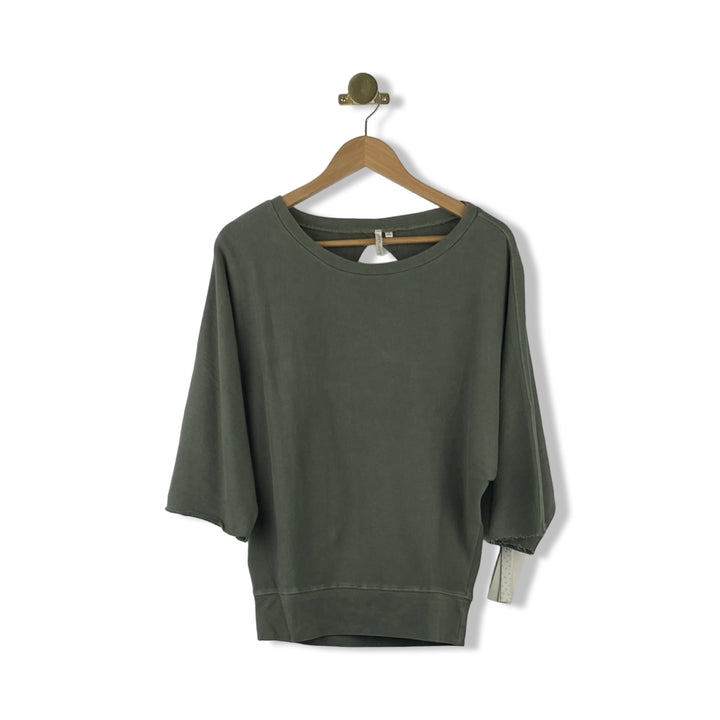 - Short sleeve sweatshirt with open back and raw hem
