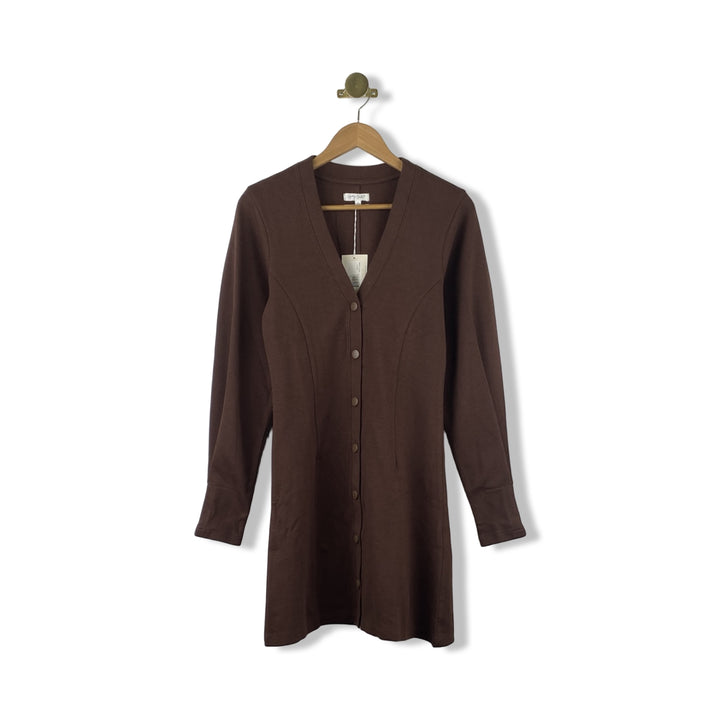 - Fitted snap front mini dress