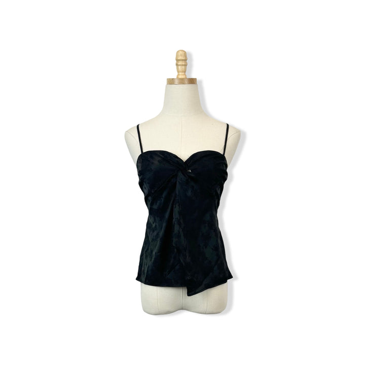 - Top with adjustable spaghetti straps, front twist and grip elastic on inner bodice.