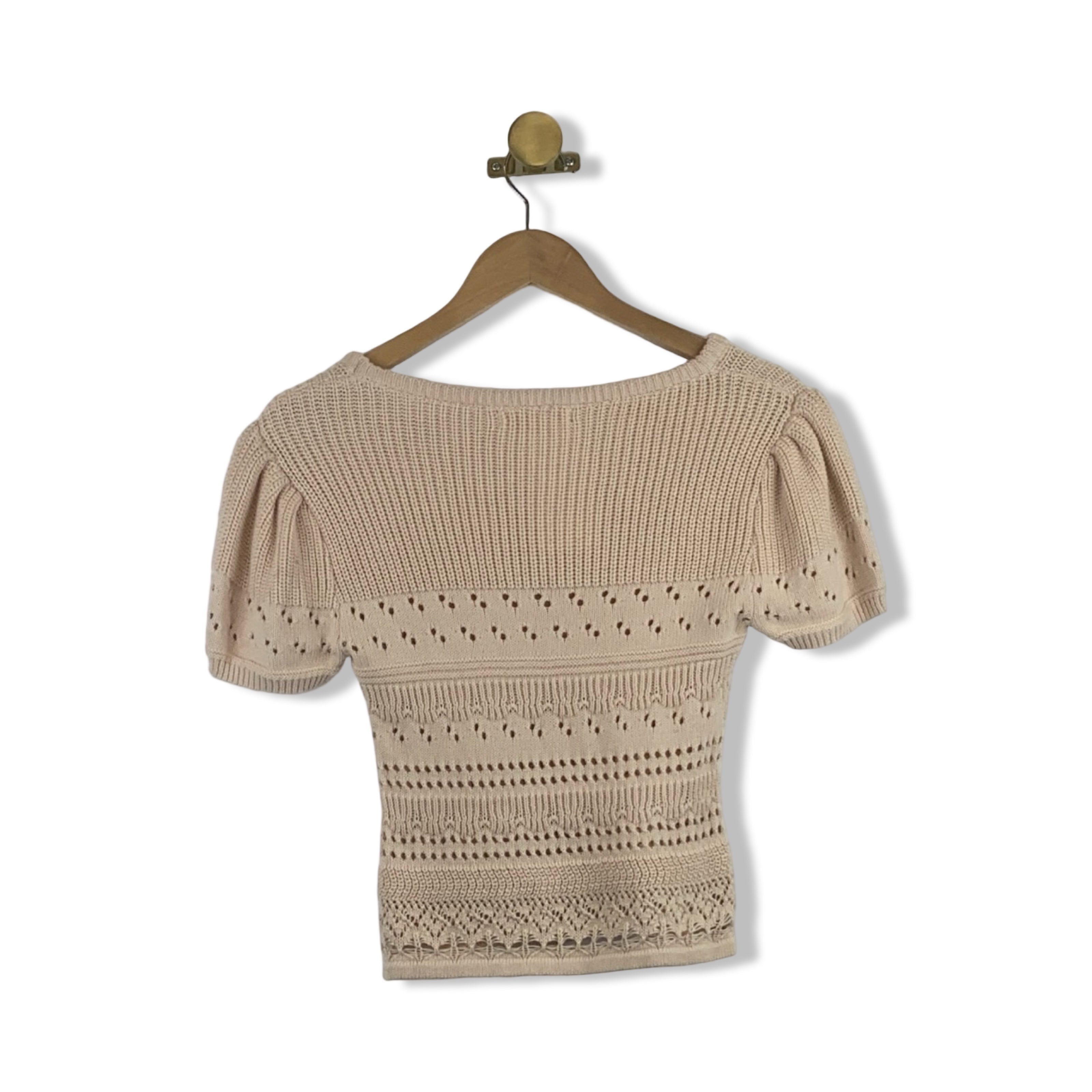 - Decorative knit short sleeved sweater