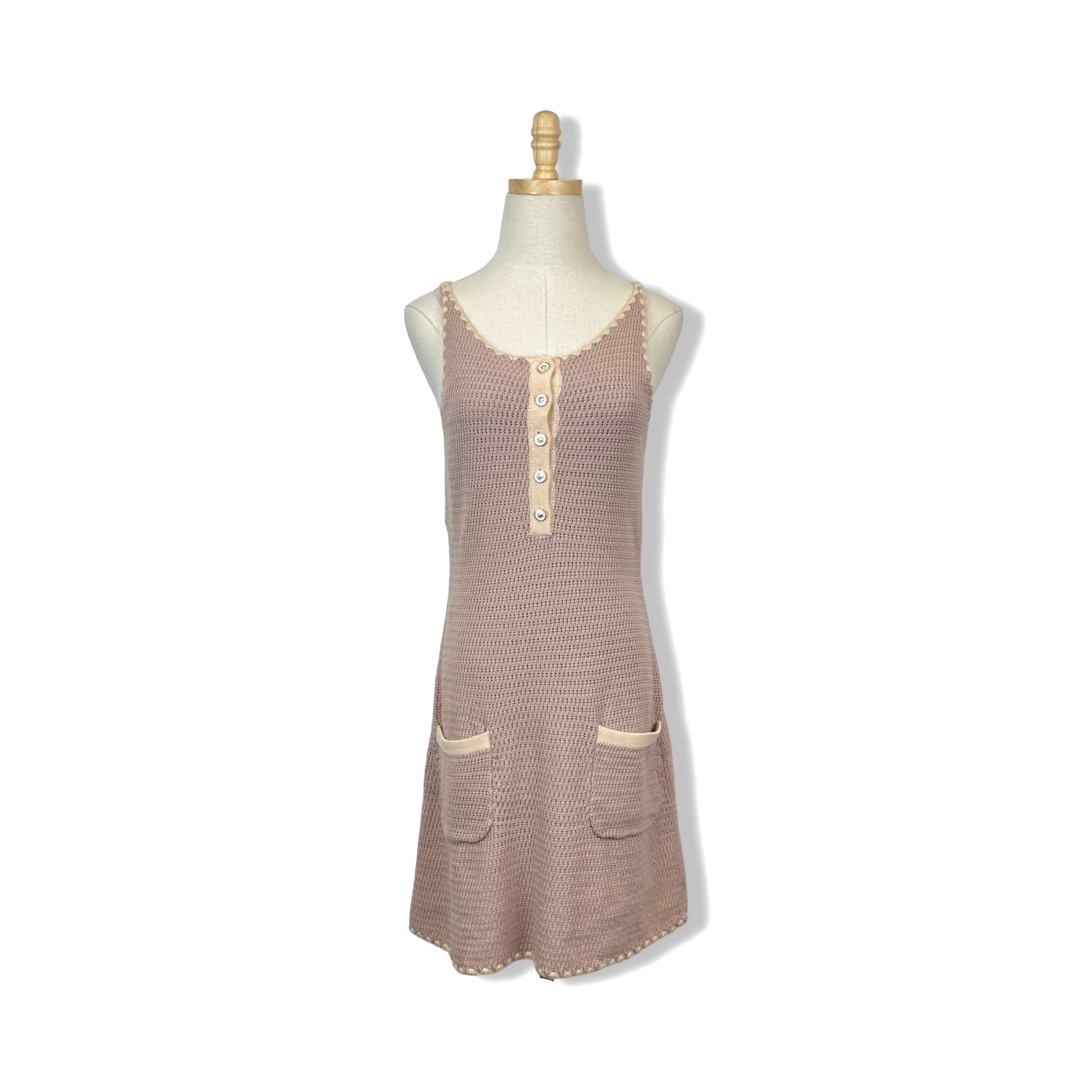 - The Veida Dress is perfect for warmer weather. It is crafted in a soft, cotton yarn with a slim fit with a crew neck. It features pretty contrast stitching on the edges and novelty buttons.