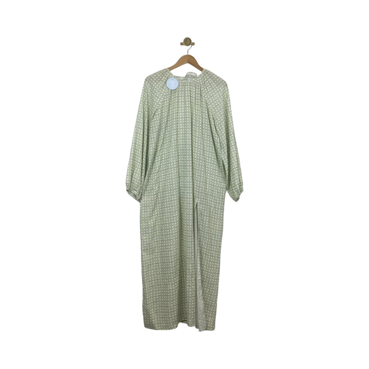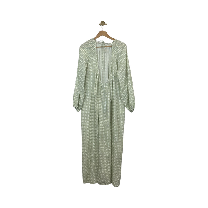 - Meet Simone, the Hill House take on a chic maxi dress. This style is sophisticated and special, with an open back, side slit in the skirt to show off some leg, and long blouson sleeves.