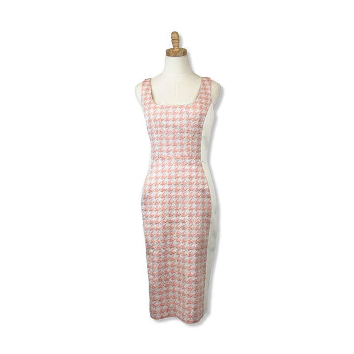 - Sleeveless dress with houndstooth panel and zip closure on back. Labeled size 4, approx. size US Small