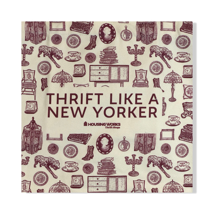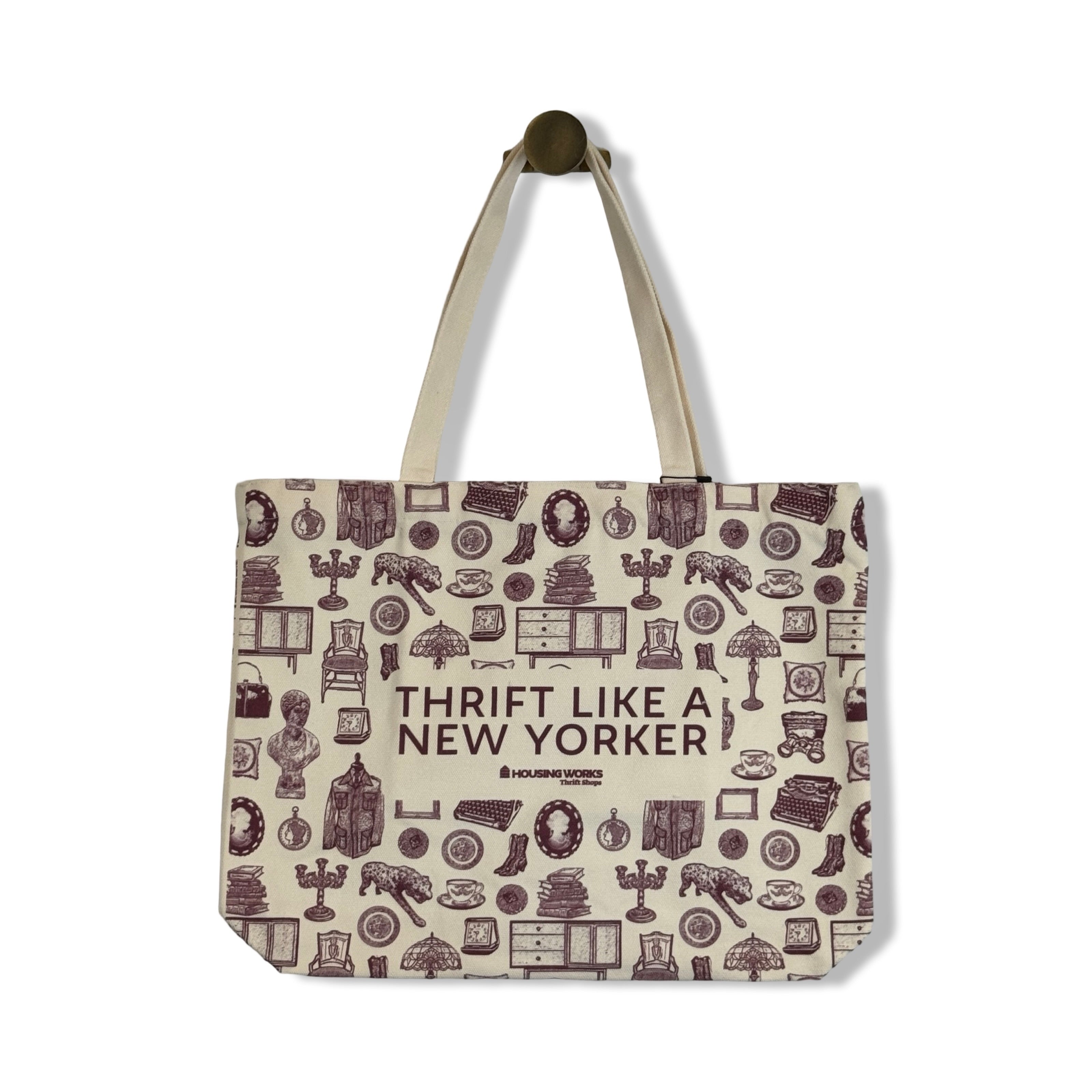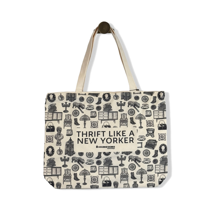 - Canvas tote bag with zip closure, interior zip closure pocket and an antiques pattern throughout.