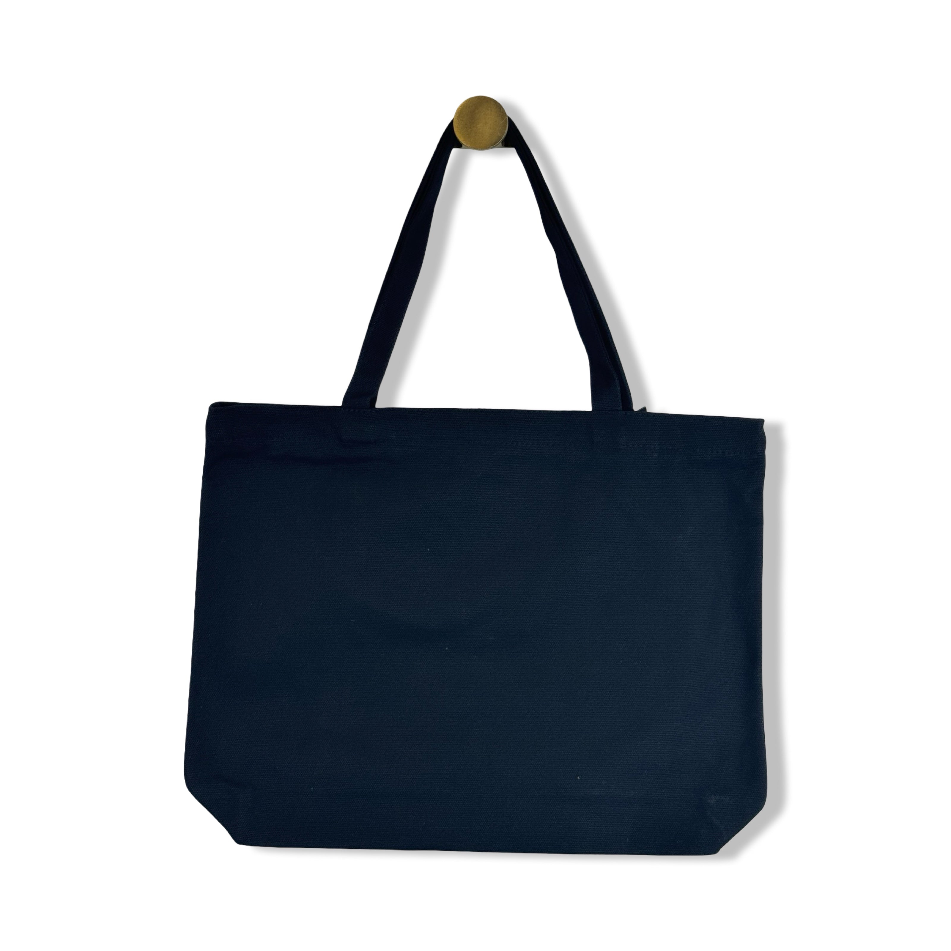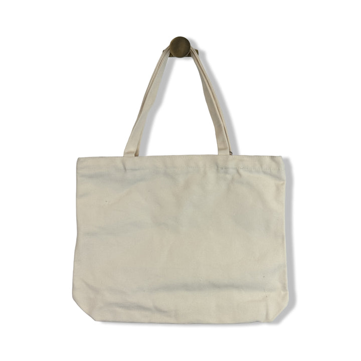 - Canvas tote bag with city design decal on front and zip closure
