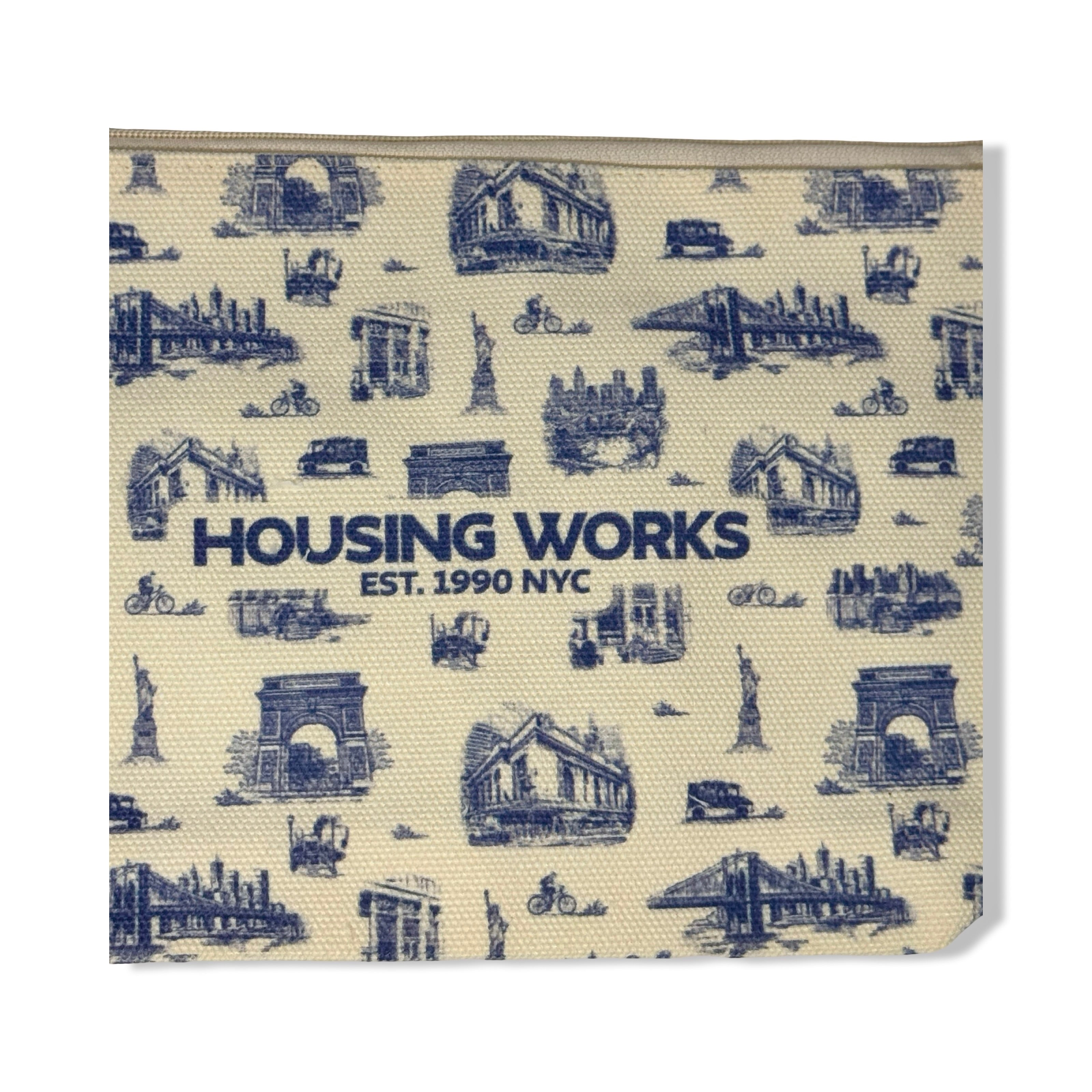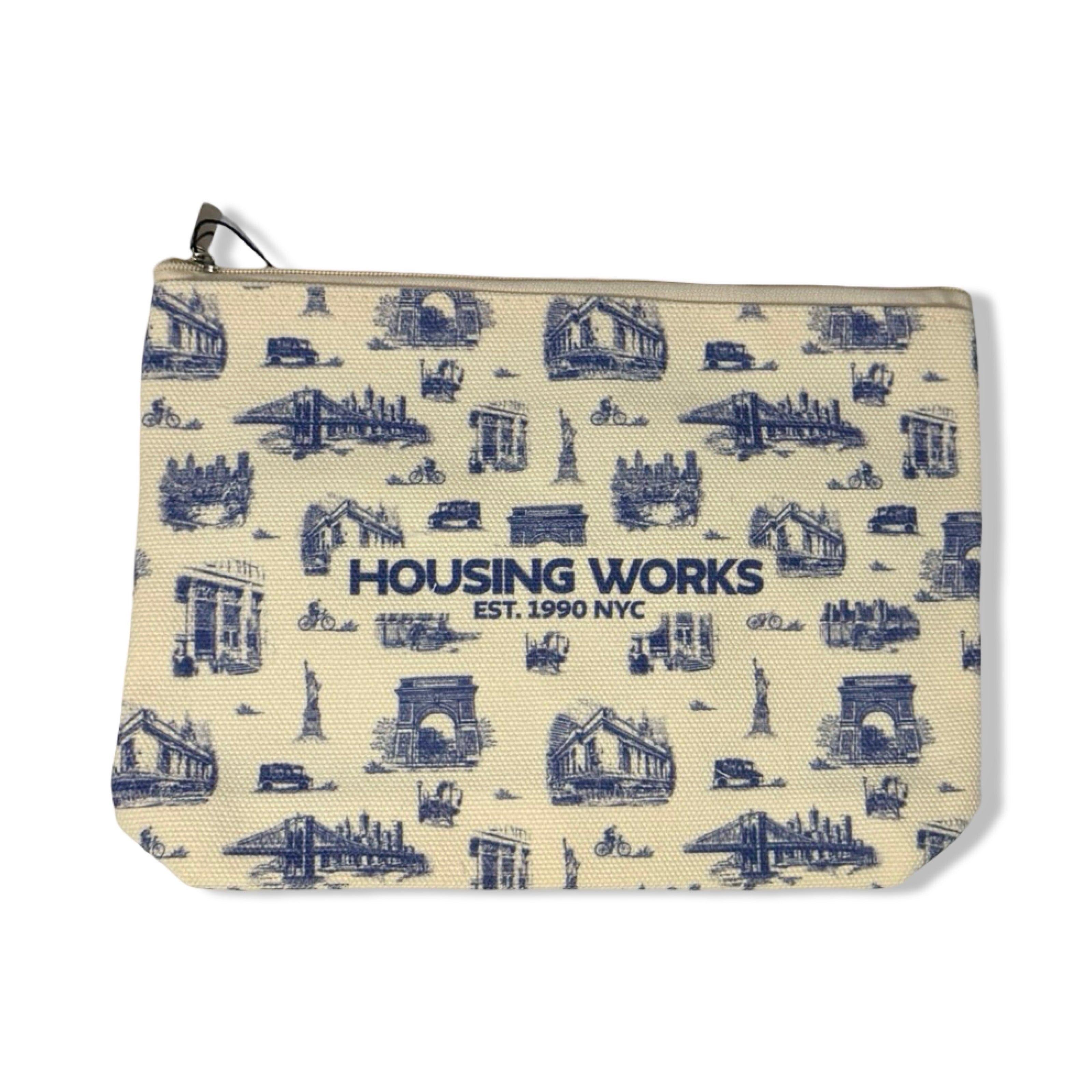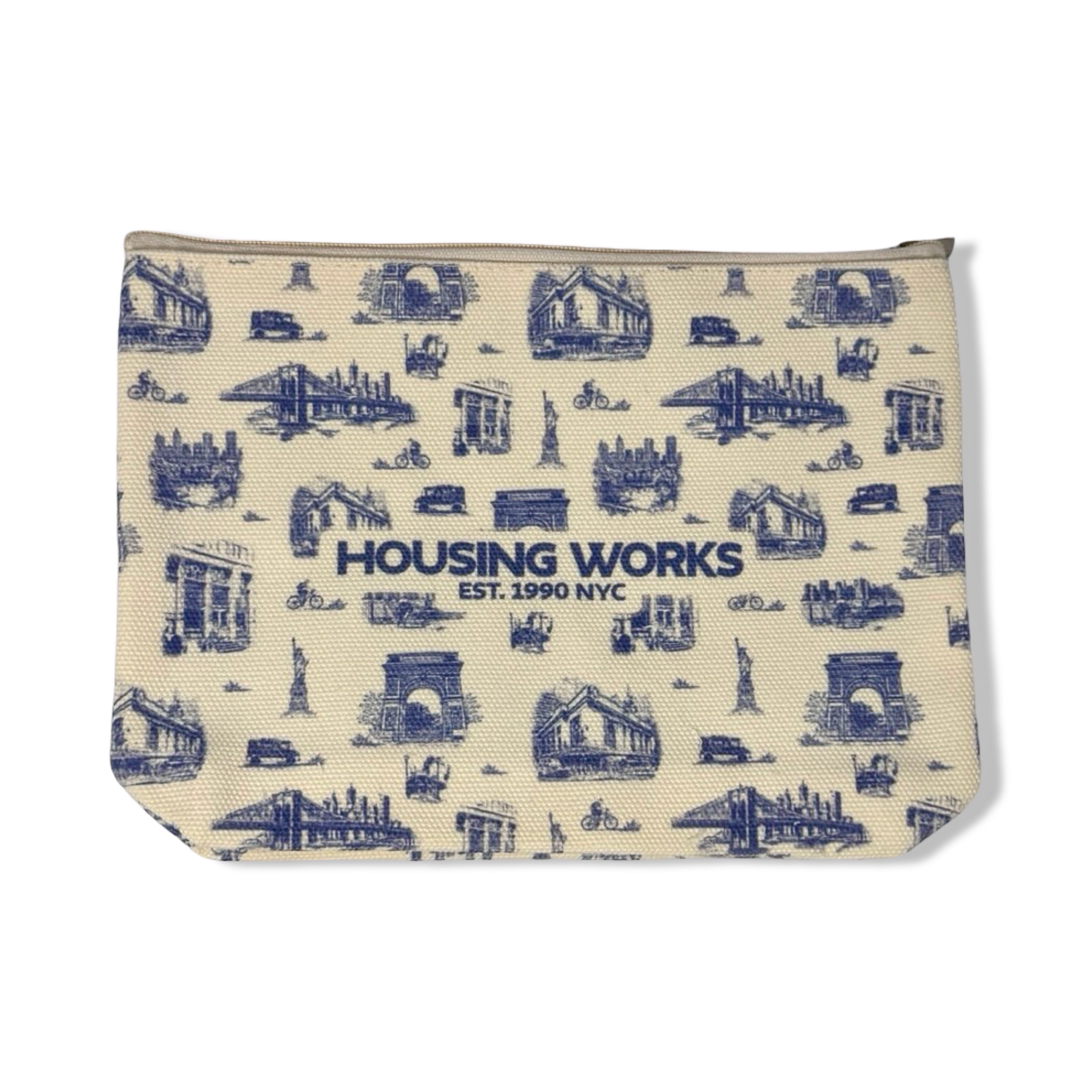 - Pouch with NYC monuments and logo pattern. Zip closure