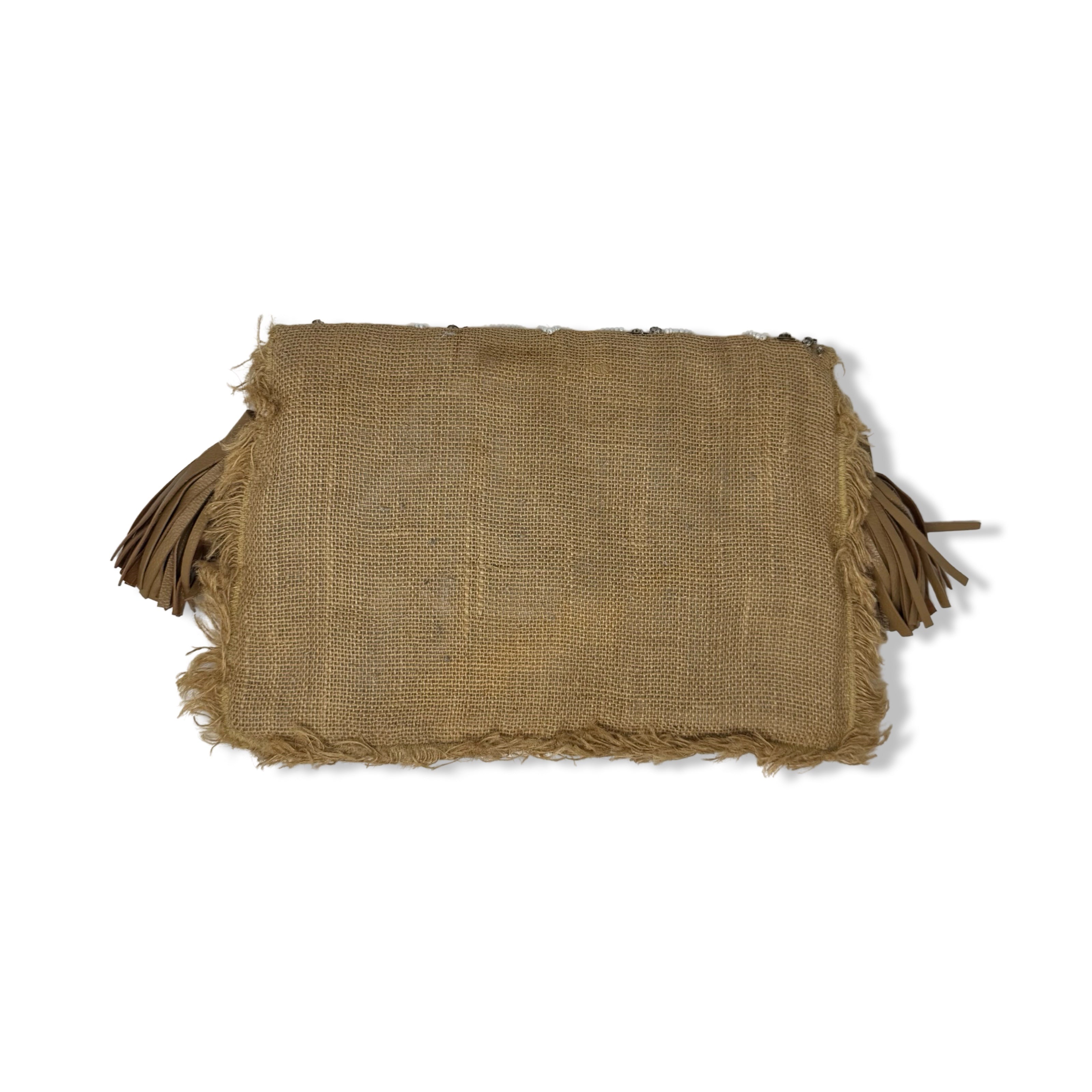 ibBan Beaded Floral Burlap Clutch