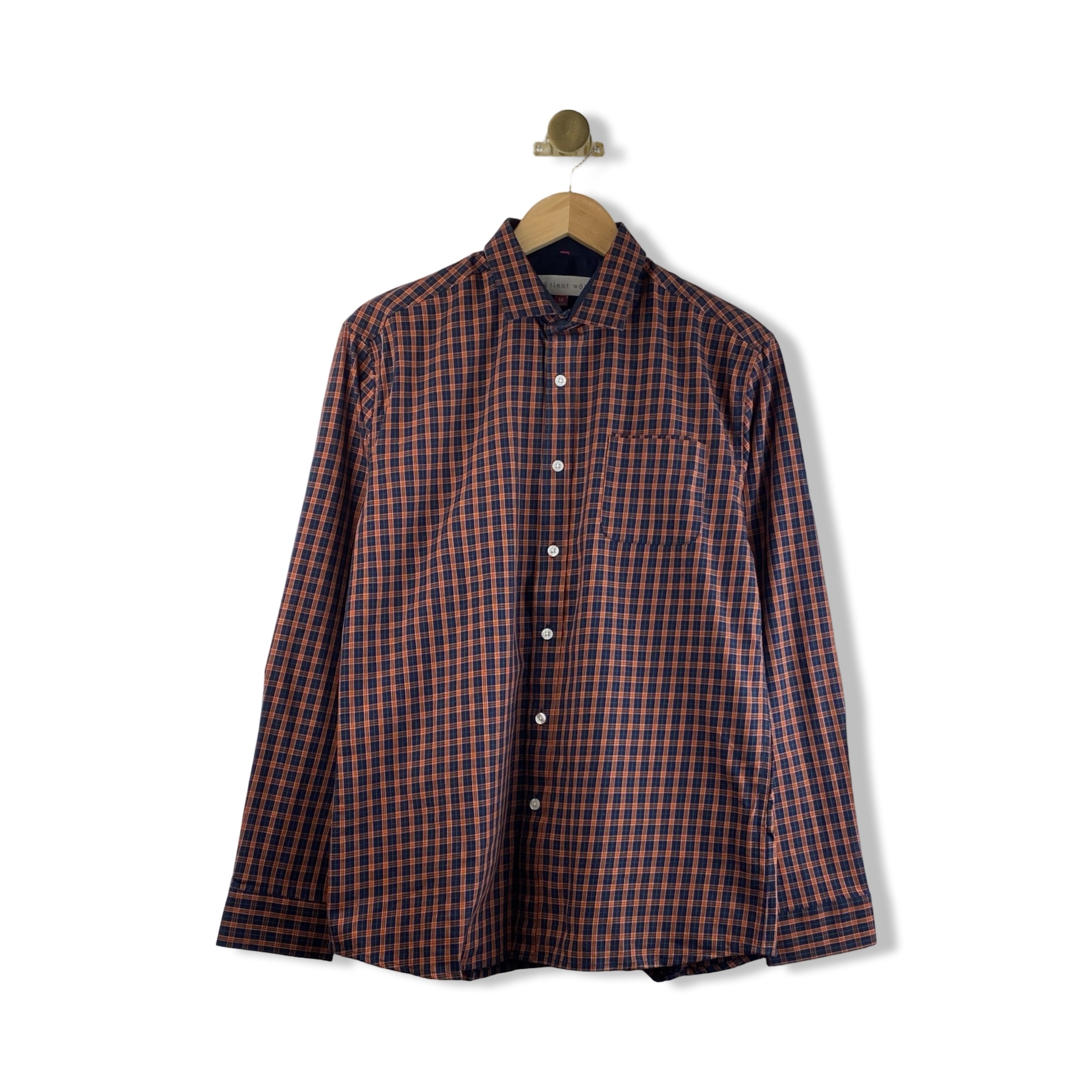 - Plaid collared button down shirt with chest pocket