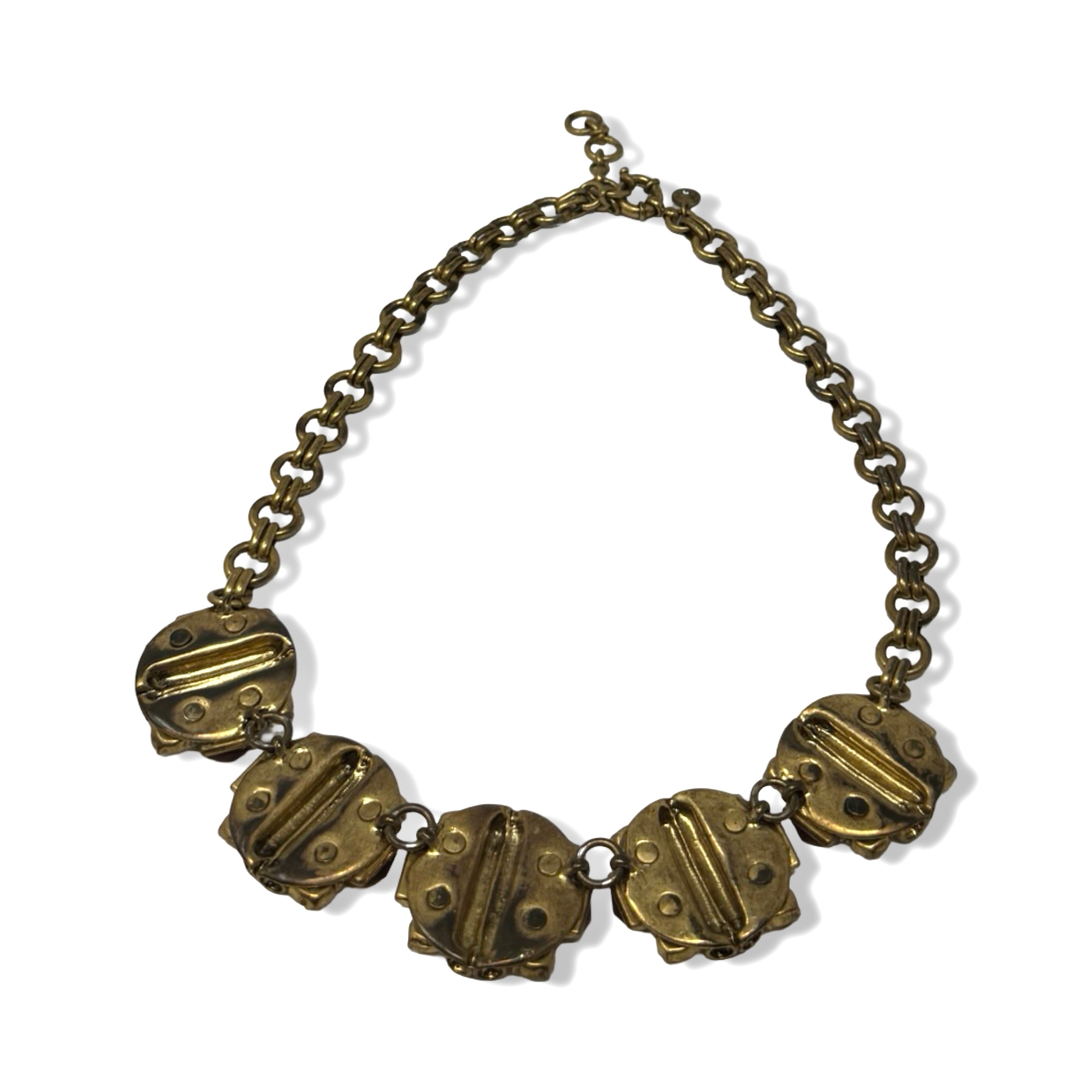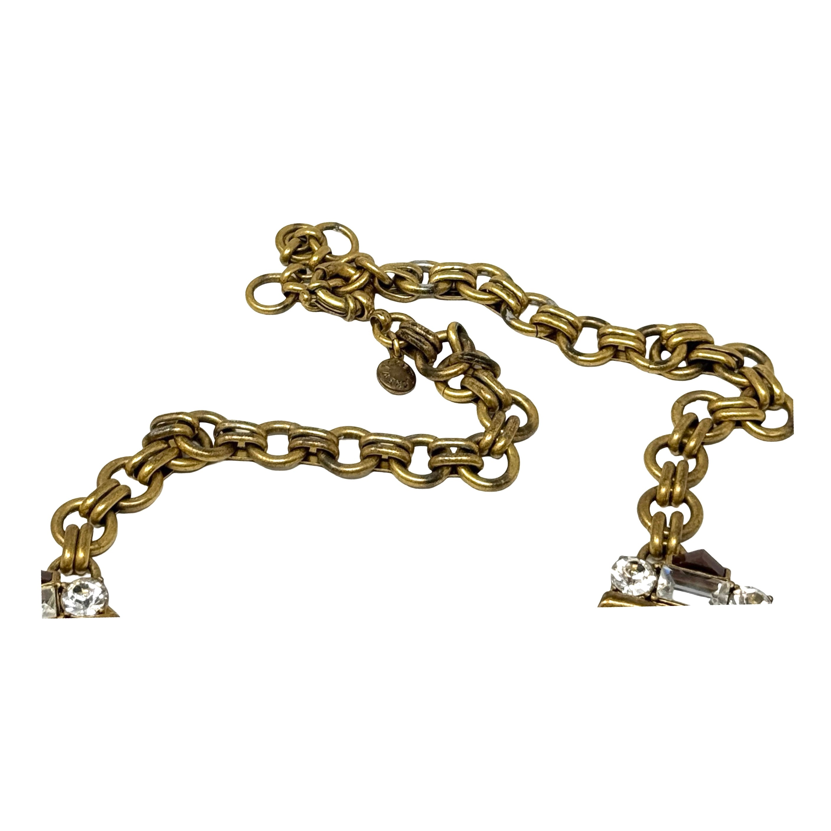 - Link chain necklace with rhinestone crystal detail on front. Signs of wear.