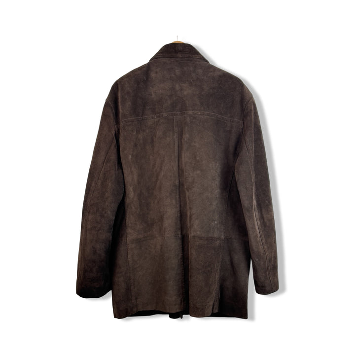 - Button up suede jacket with front pockets, seam stitch detailing. Signs of wear (pictured)