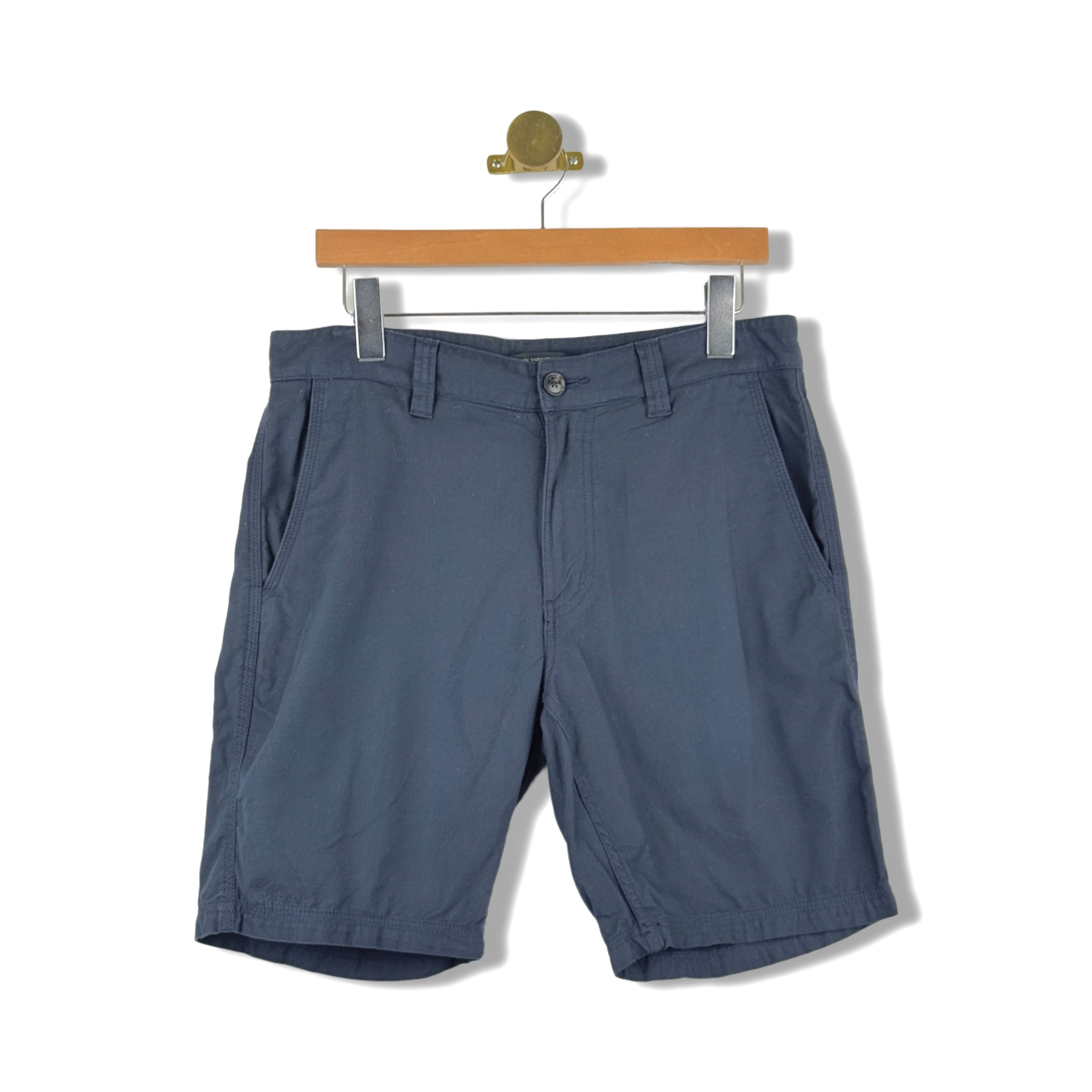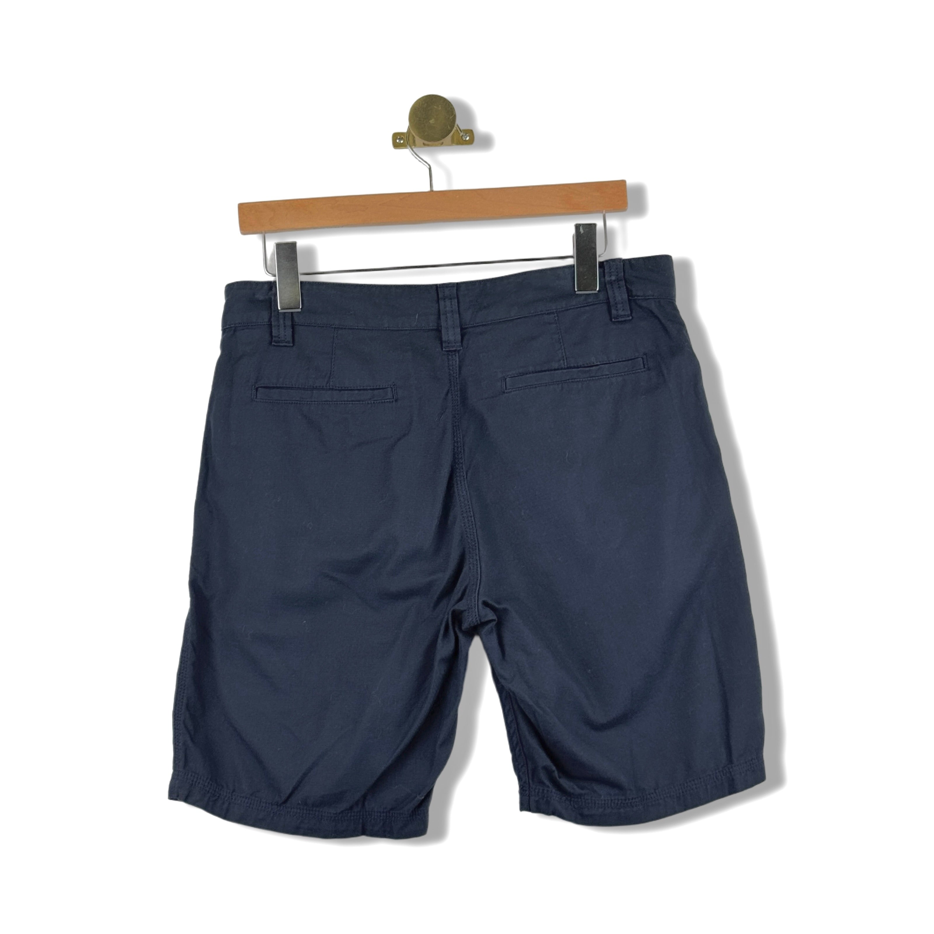 - Pull on shorts with zip fly and button closure. Front and back pockets.