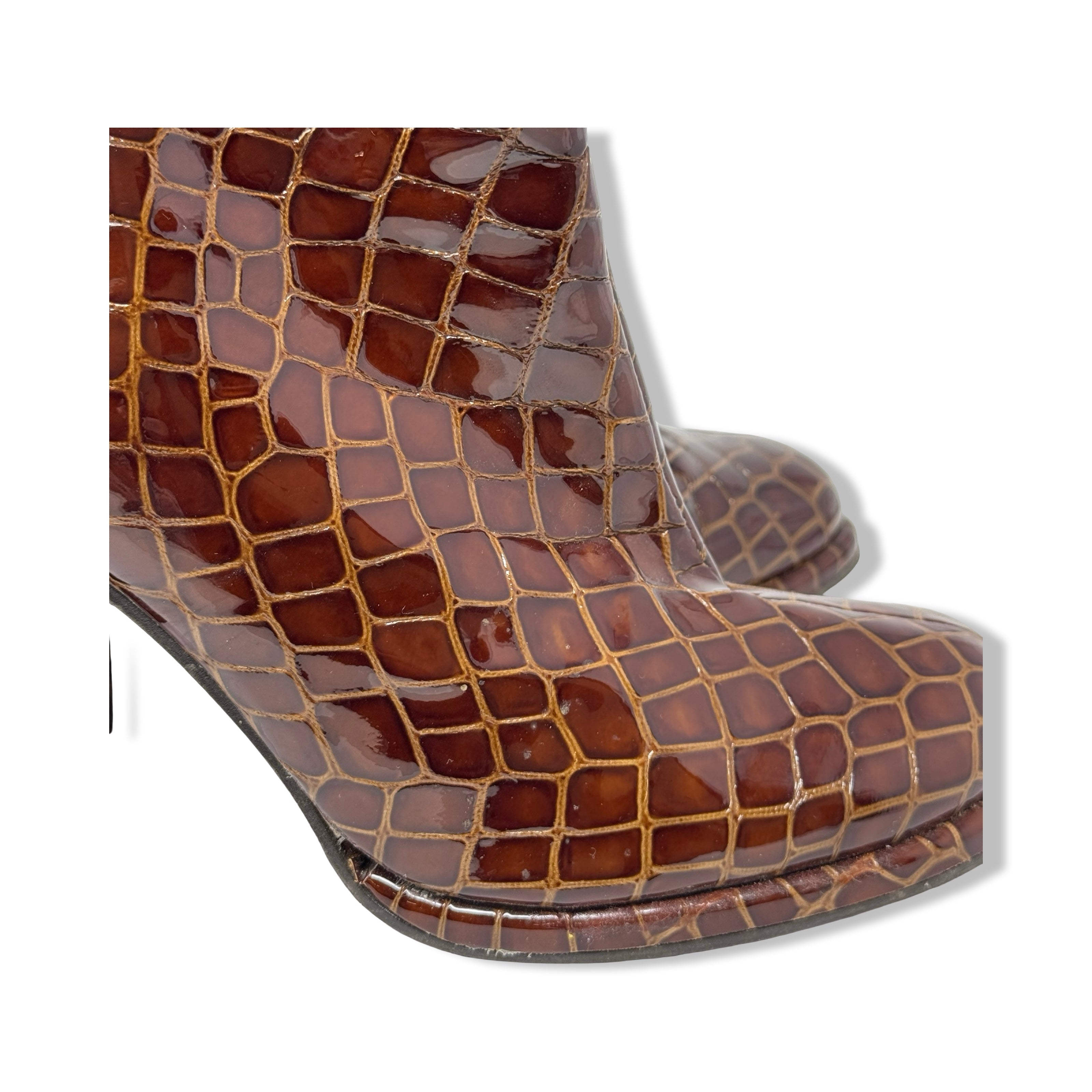 Jonak Patent Leather Croc Embossed Heel Bootie