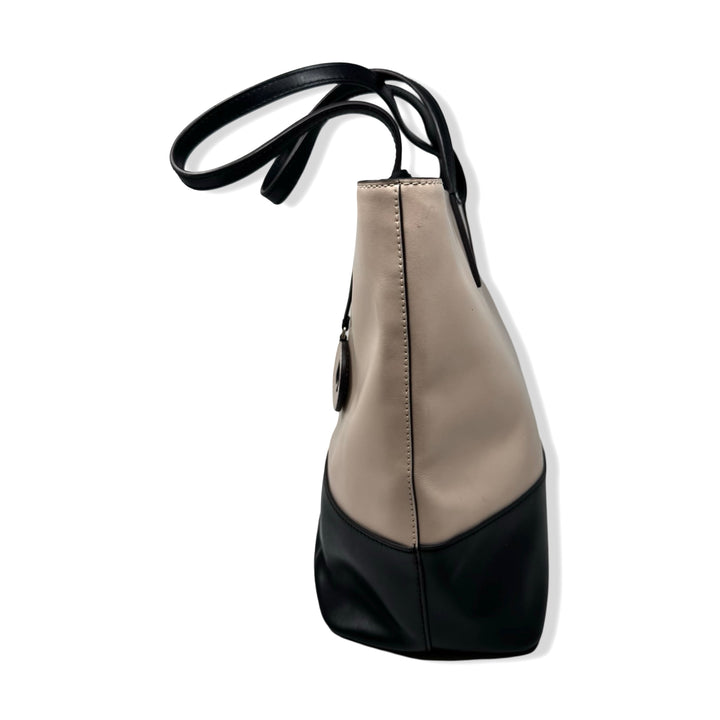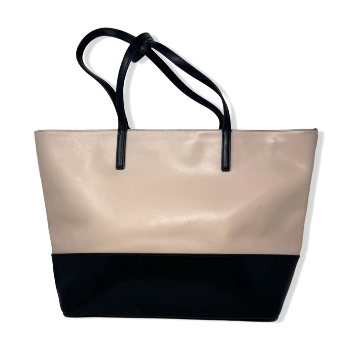 - This tote bag features a color block design, along with interior pockets and a zip closure for added functionality. Some signs of wear