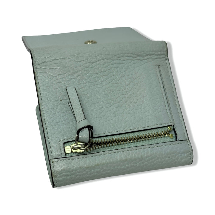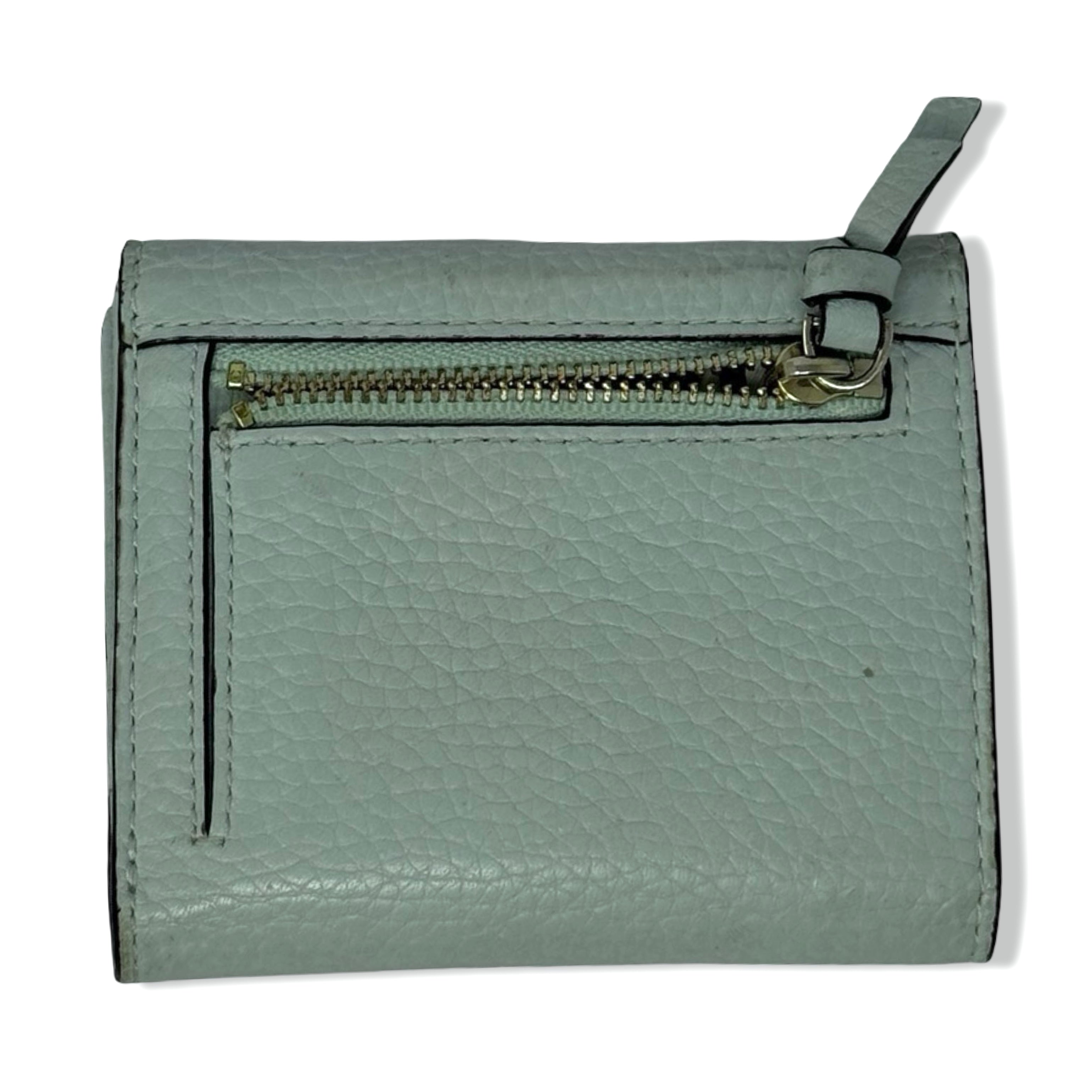 - Tri-fold wallet with card slots and full-bill pocket. Coin zip pocket on back. Signs of wear