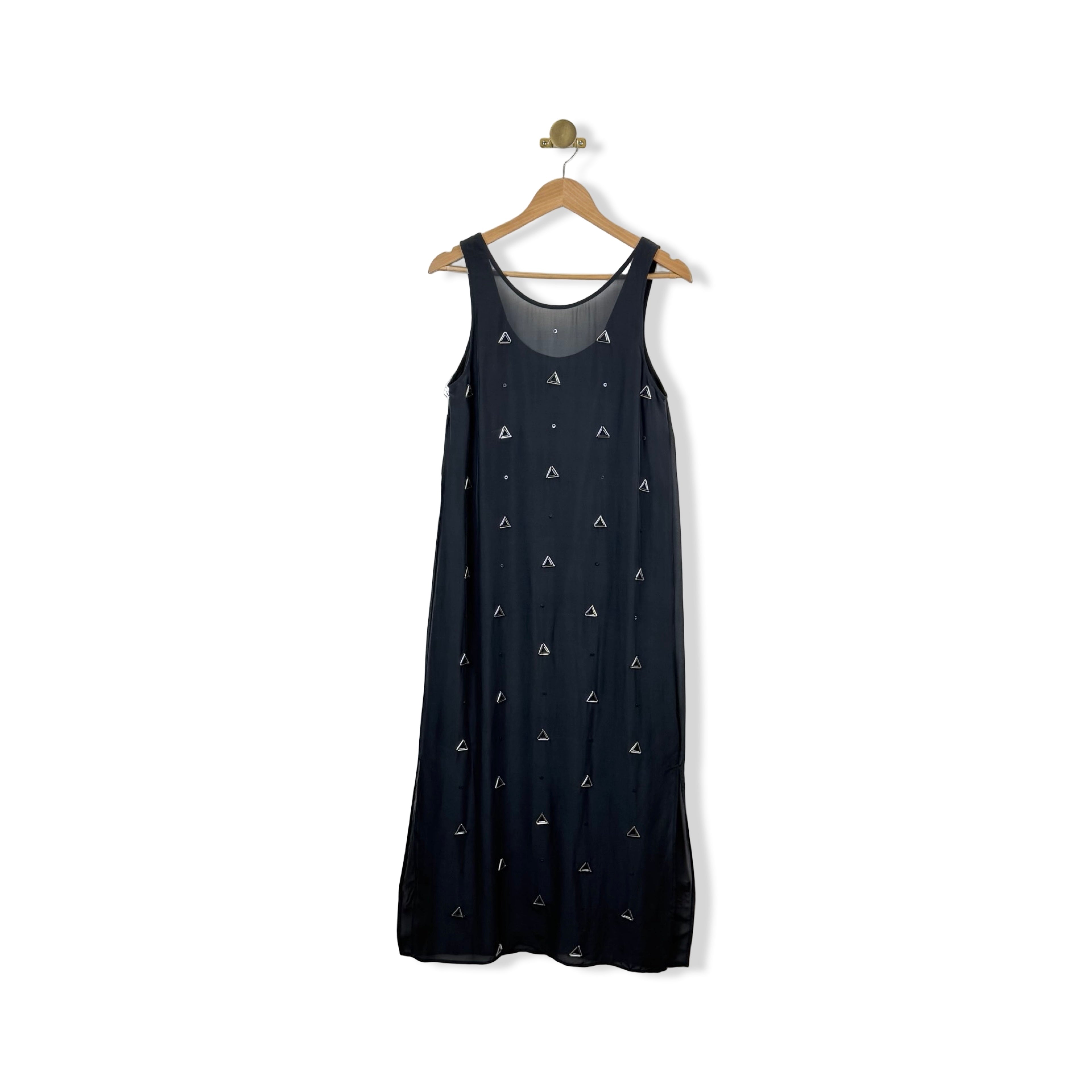 - Maxi dress with beaded patterning throughout. Size label missing, looks like a small. Please check measurements for reference