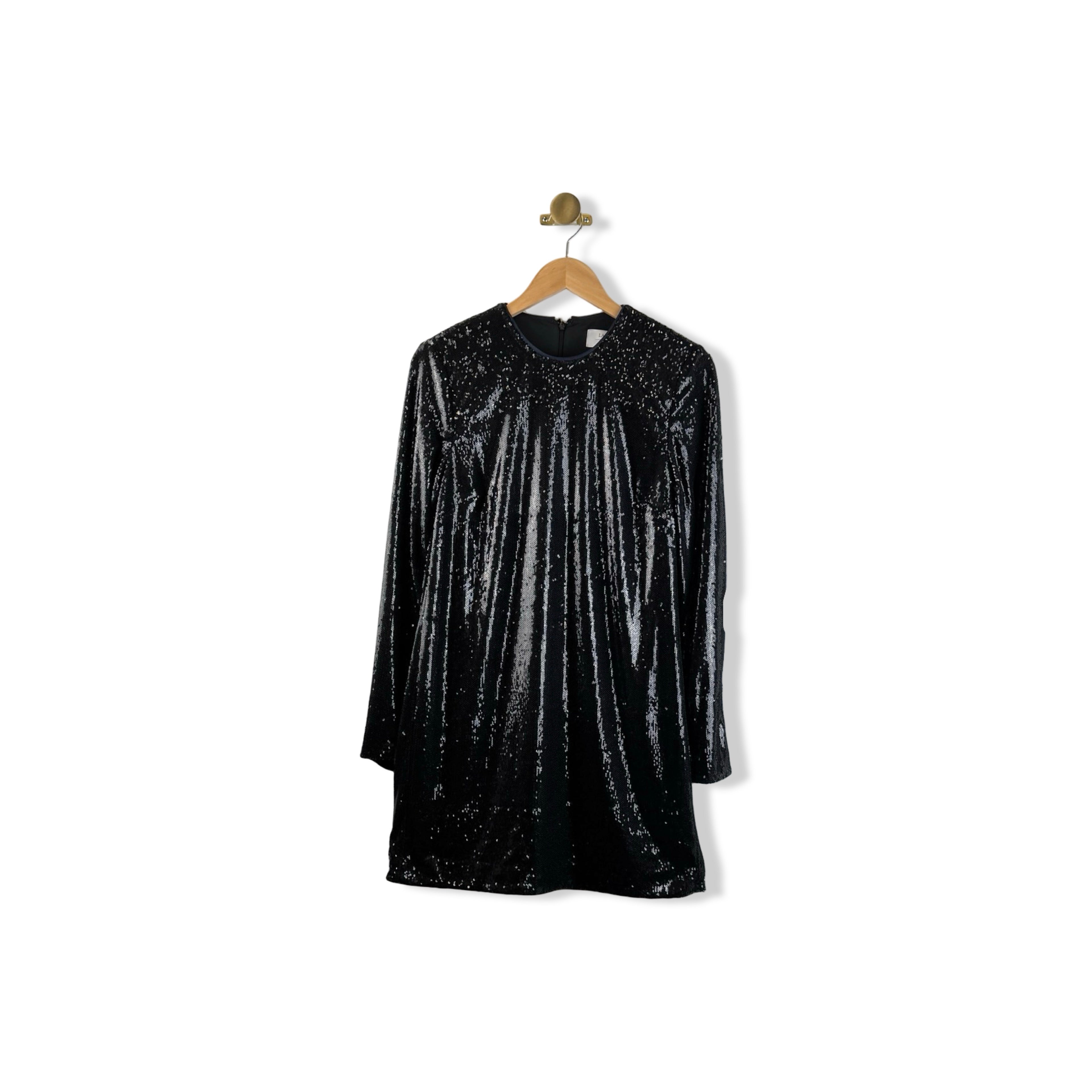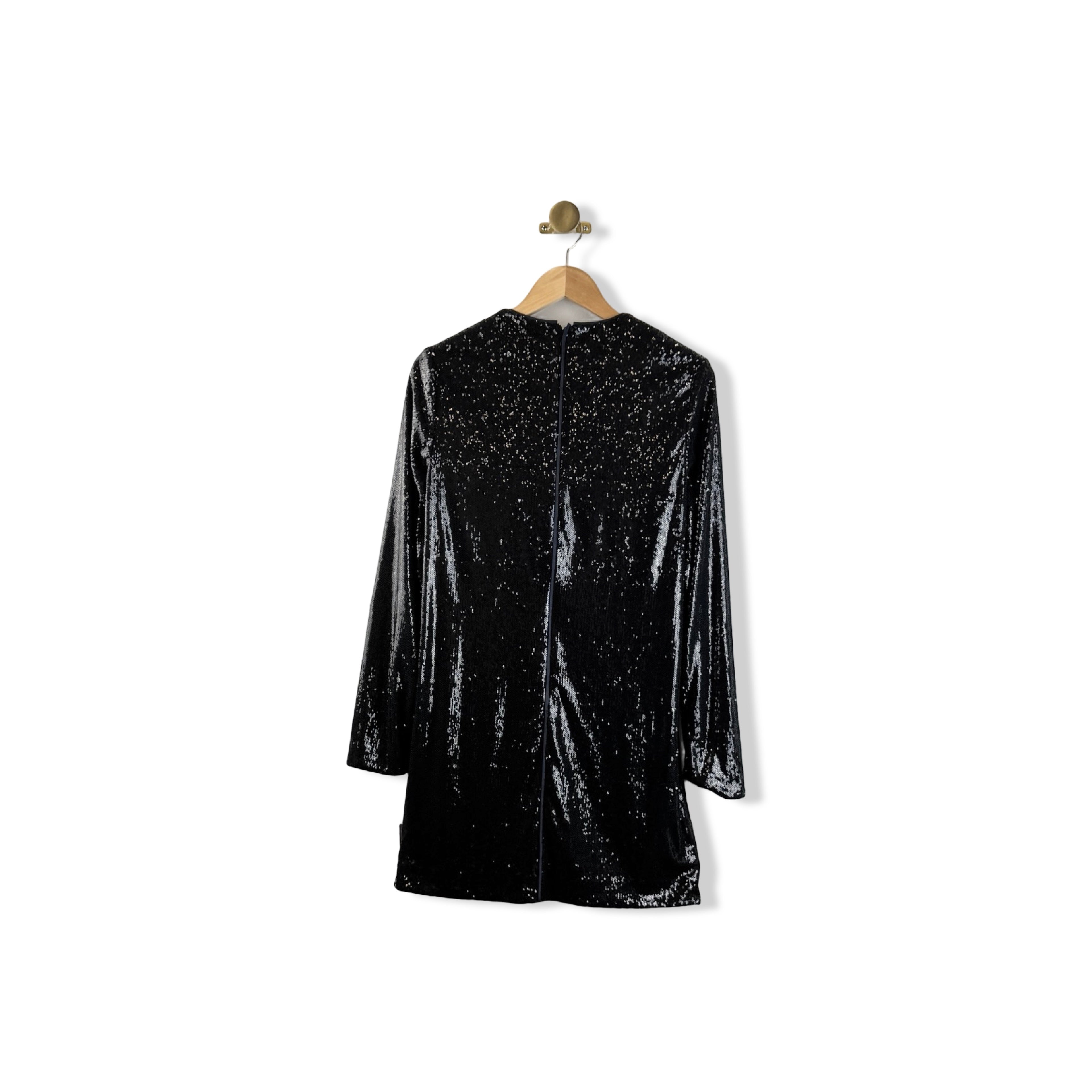 - Long sleeve sequin dress with back zip closure