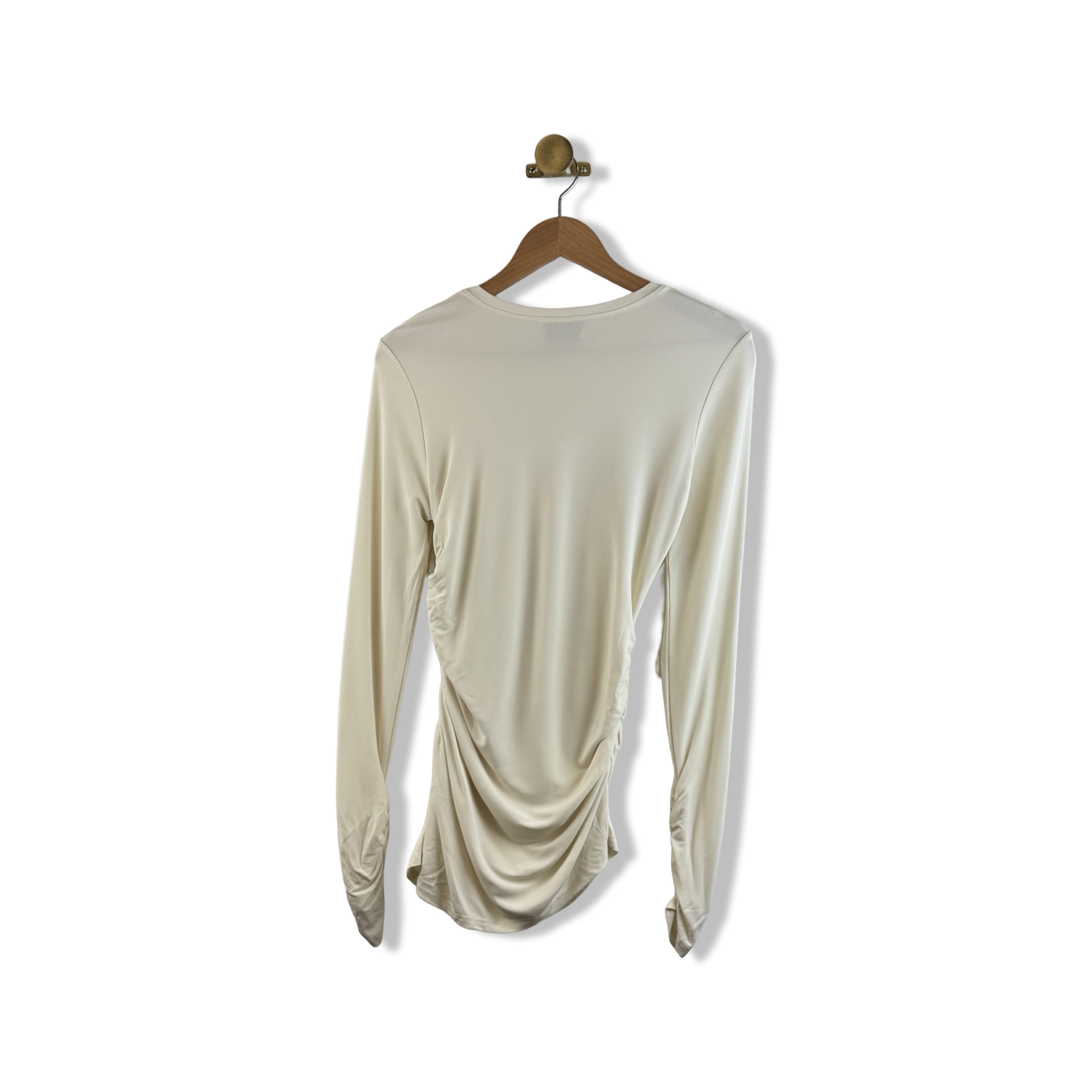 - Sheer long sleeve shirt with ruched sides. Size label missing, looks like Small