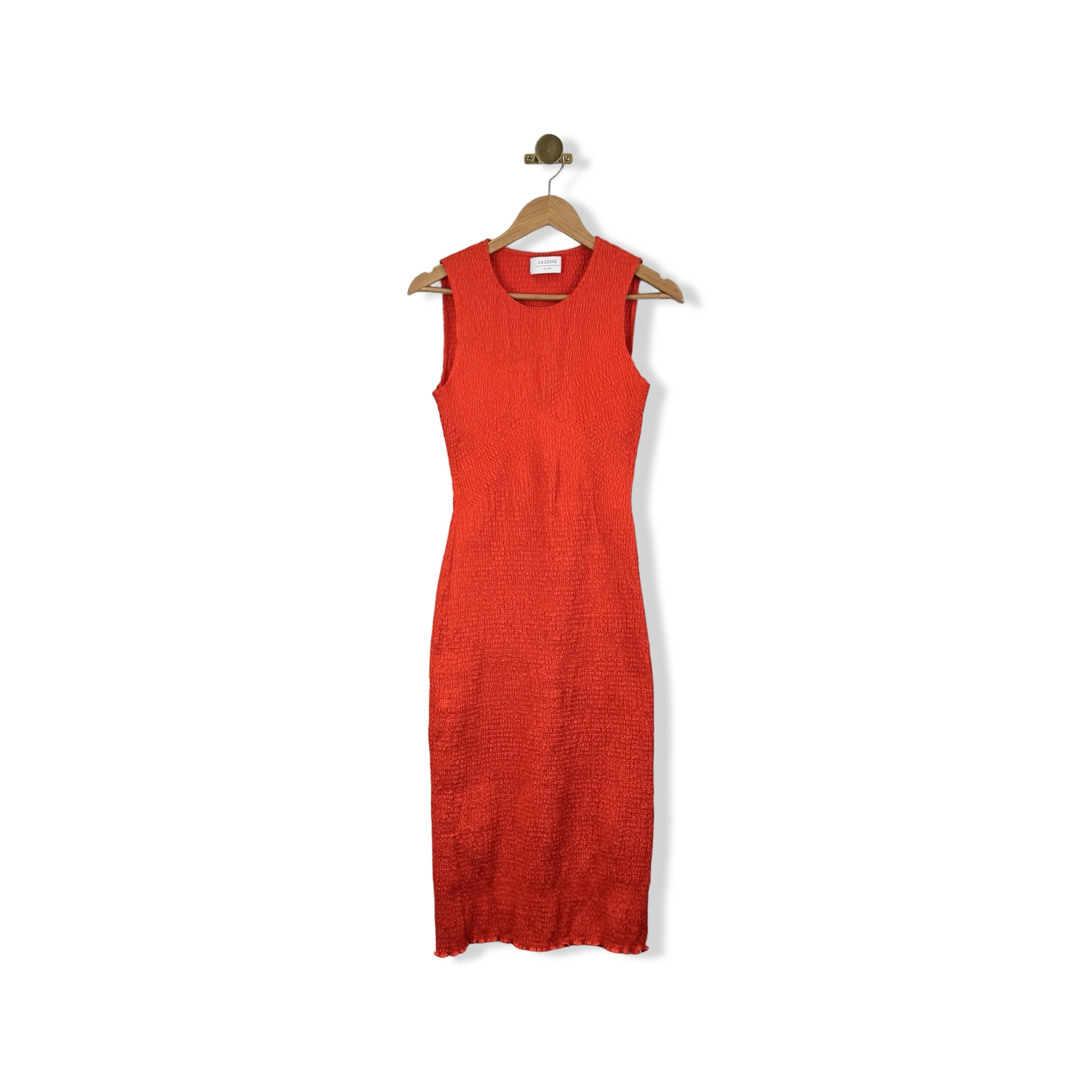- La Ligne's midi dress is strategically shirred throughout, ensuring it hugs your figure in all the right places. It's cut from 'Vermillion' cotton-twill and has a close, comfortable fit. Size labels missing. Looks like a size x-small and small. Please check measurements for reference.
