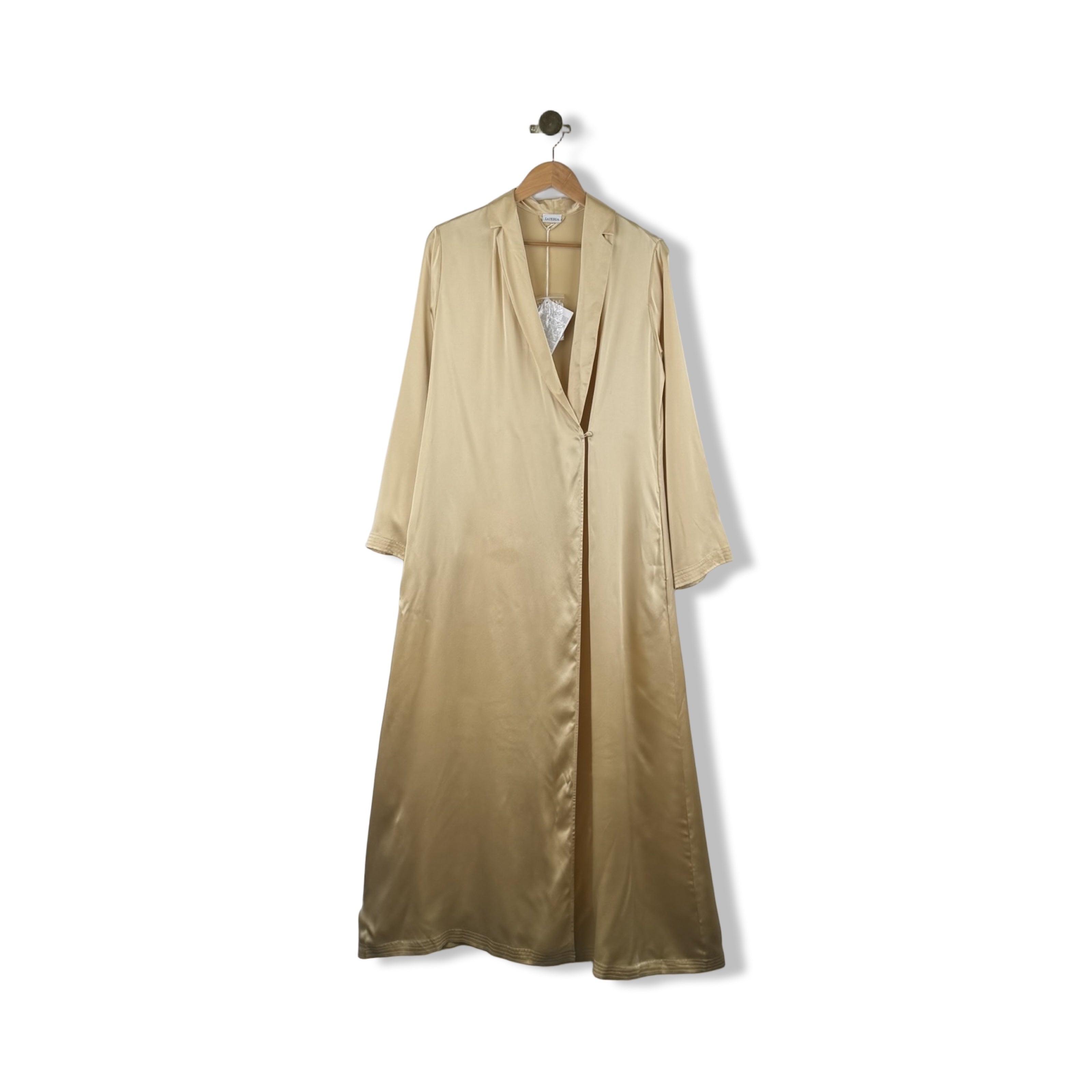 - Long silk robe with self tie waist