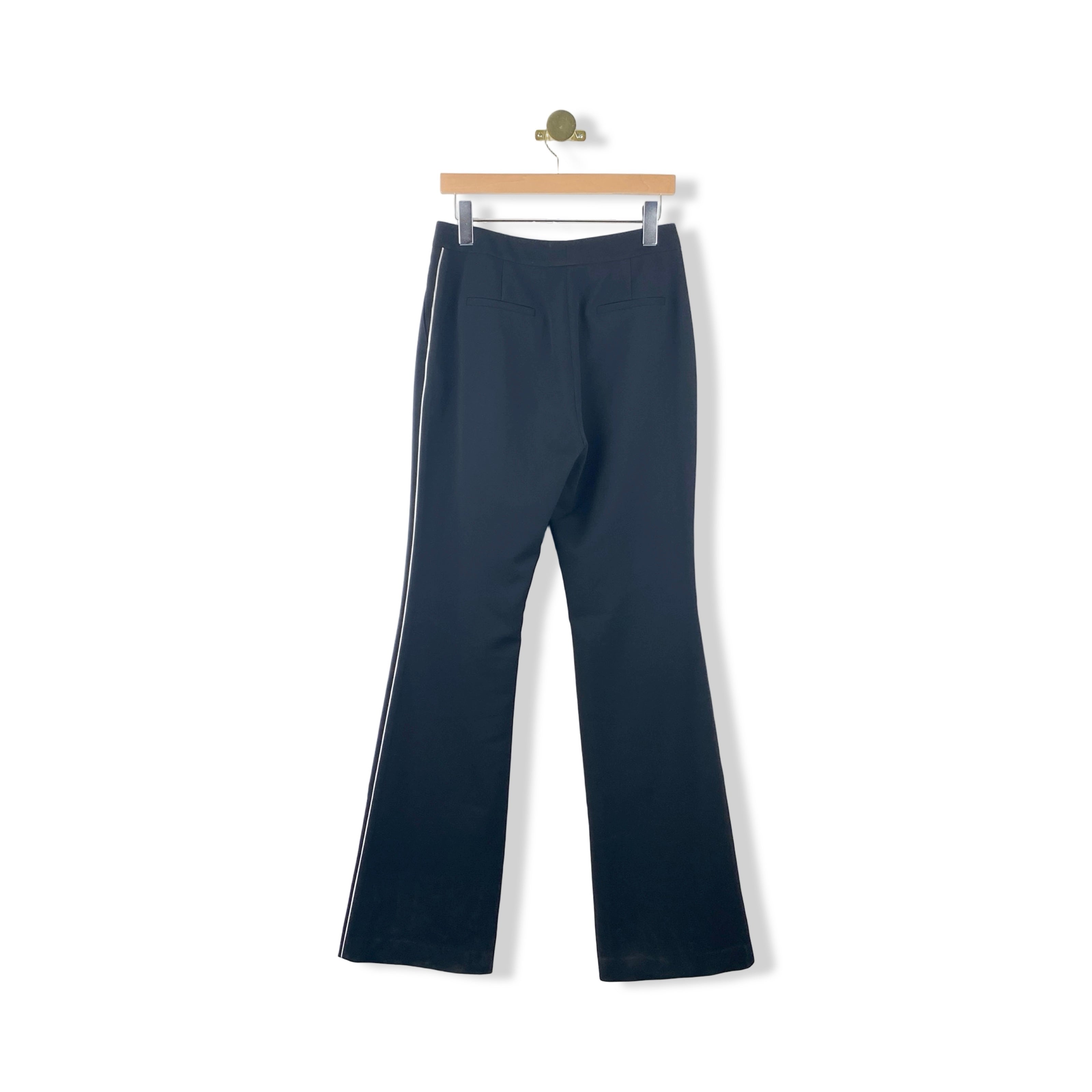 - Flare pants with contrast piping on sides, front and back pants and a zip fly with hook-and-bar closure.