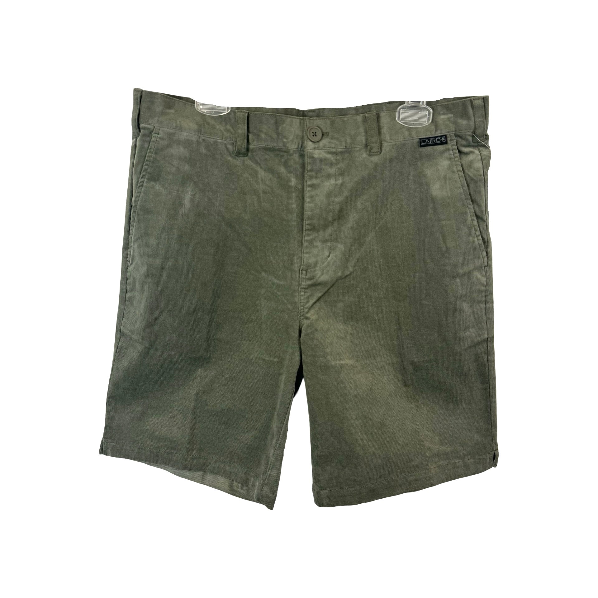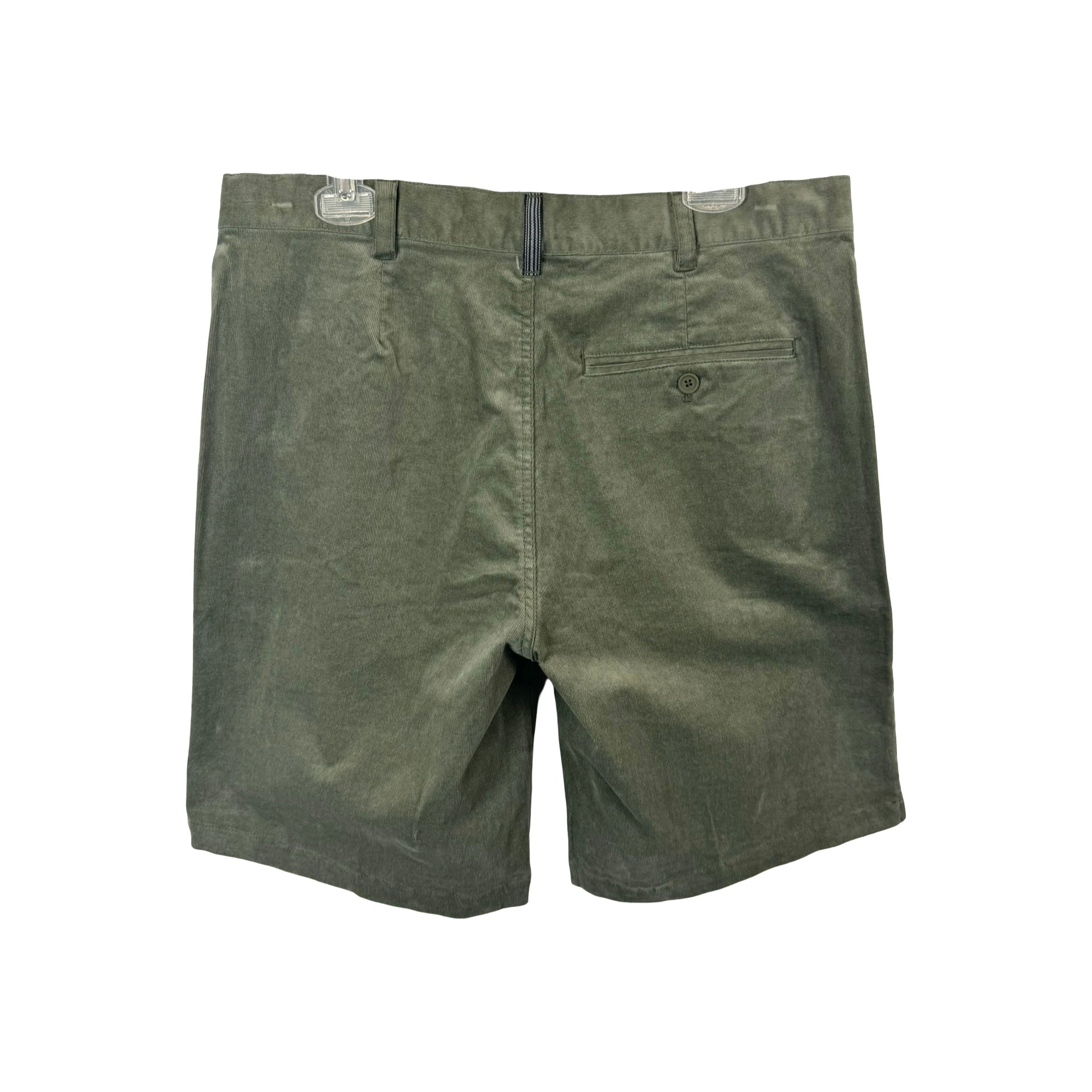 - Corduroy shorts with dual front and back pockets. Button zip fly closure.