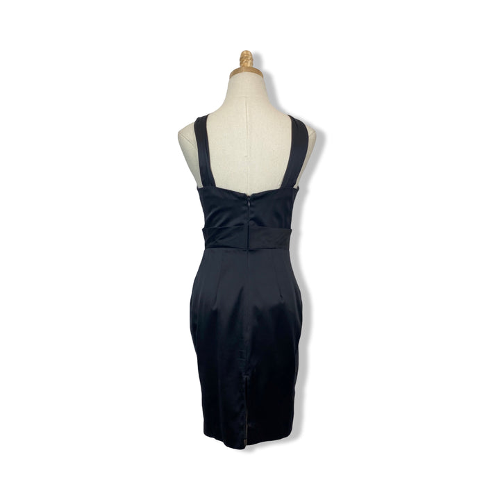 - Halter mini dress with front embellishment, vent on back hem and zip closure on back. Missing size label, looks like a size x-small. Please check measurements for reference.