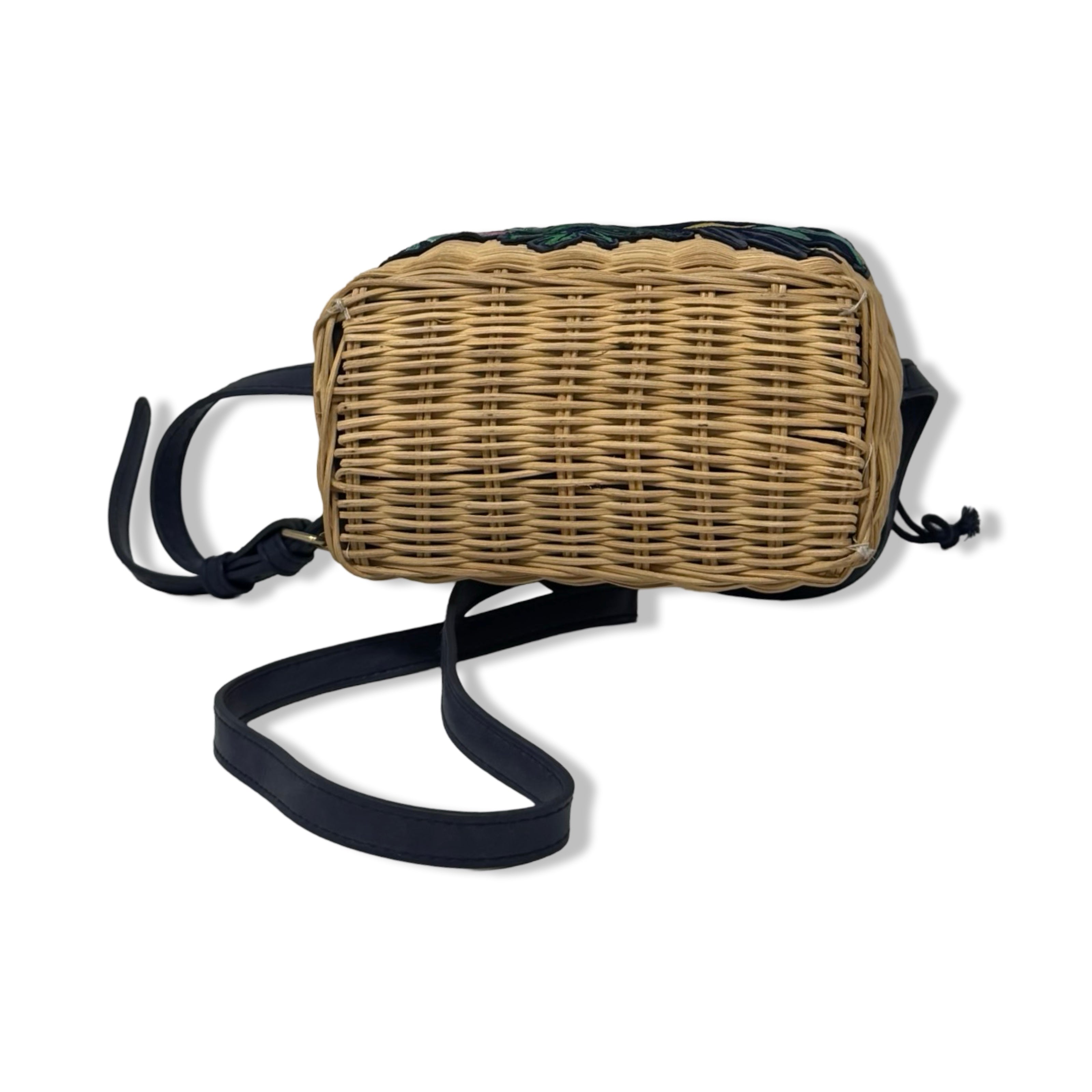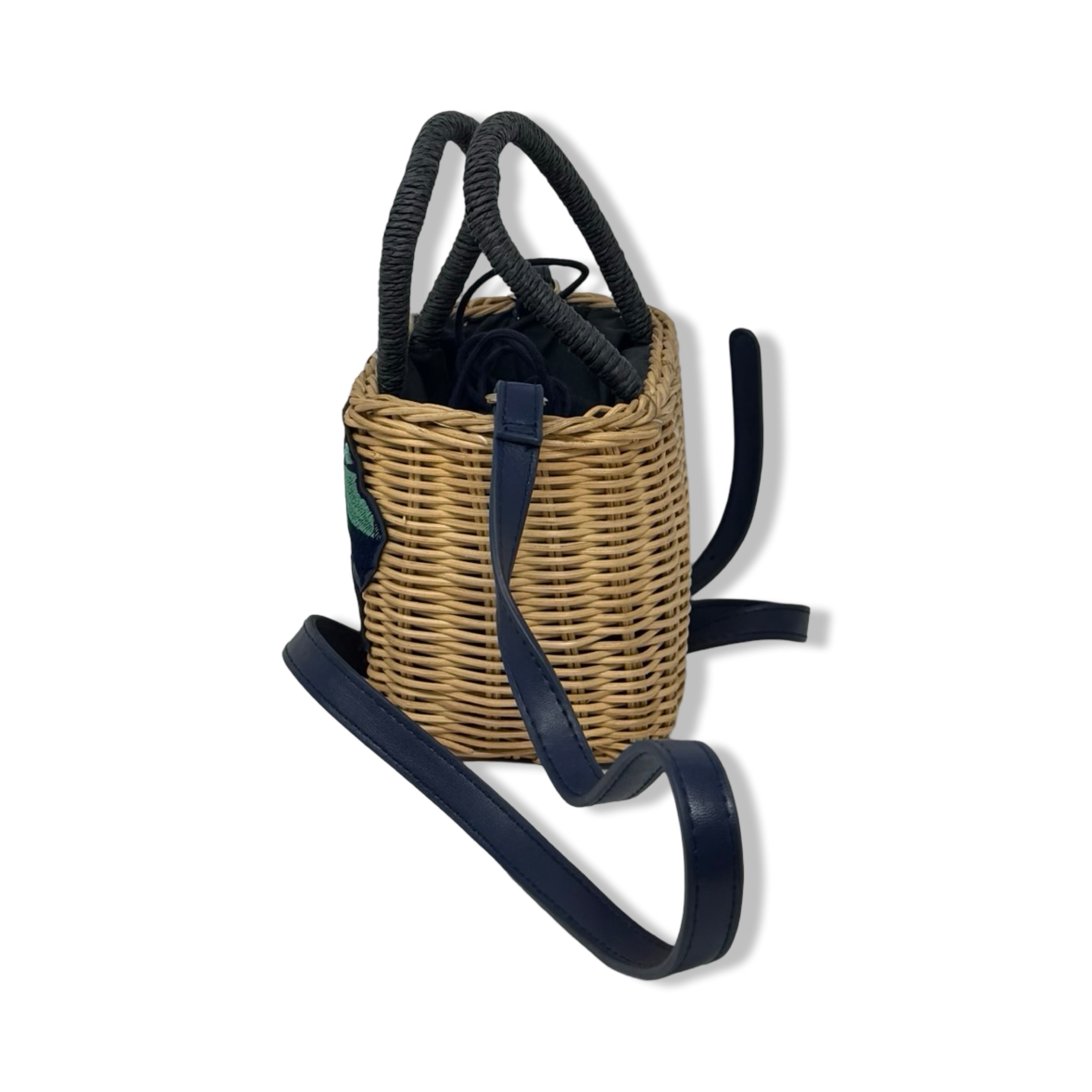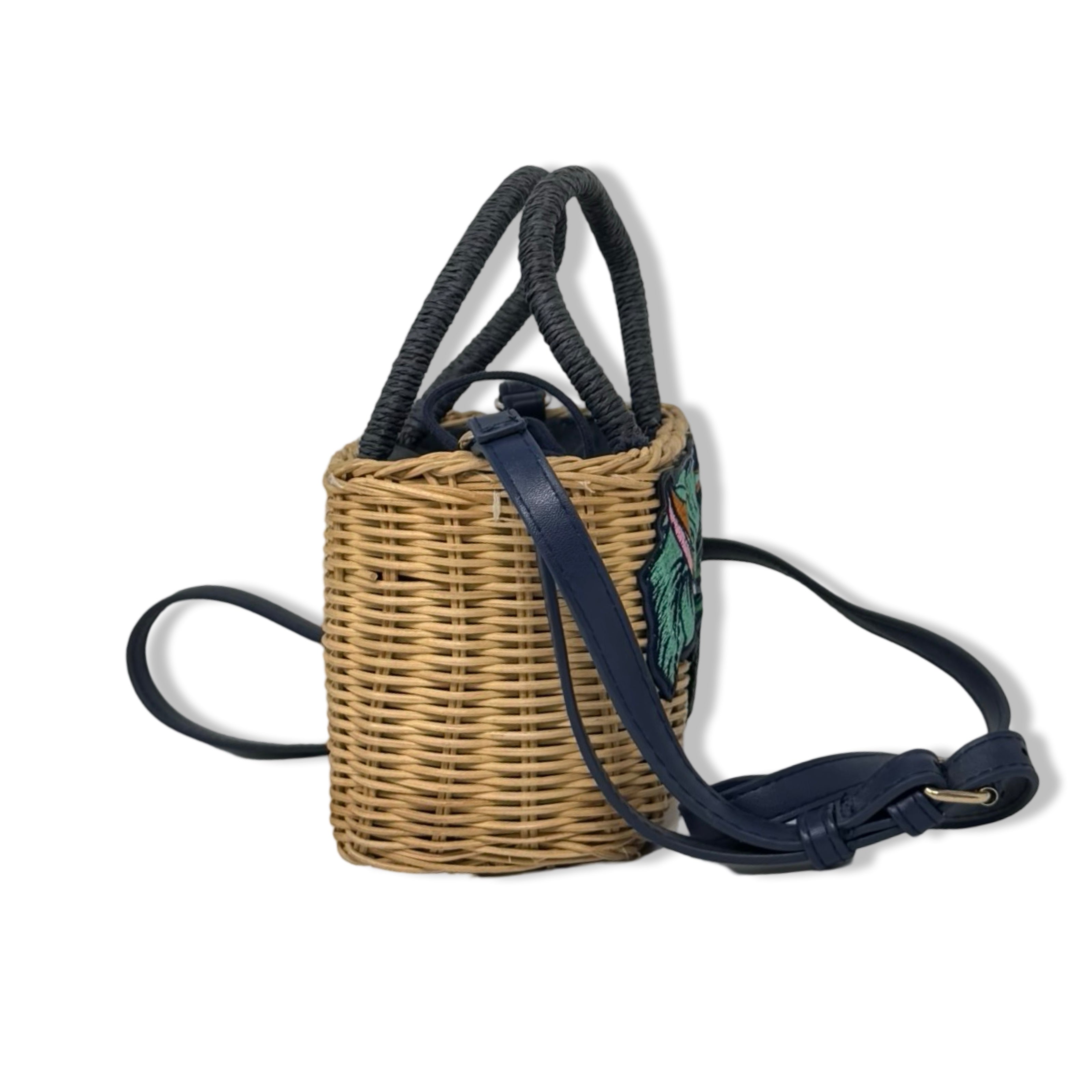 - Tote all your essentials (and a little extra) in this Leaf Embroidered Mini Straw Bag. With a drawstring closure and attached adjustable strap, this square bag is perfect for a day out. Some signs of wear.