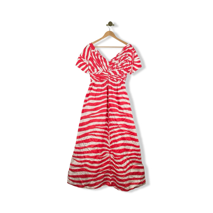 - Patterned fit and flair dress with back zip closure