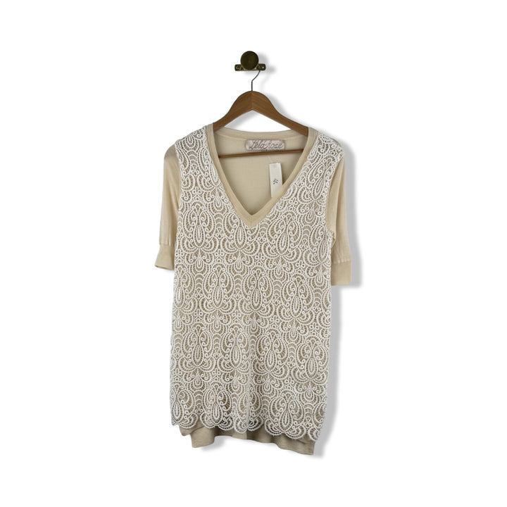- Short sleeve tunic with lace front and 3/4 sleeves