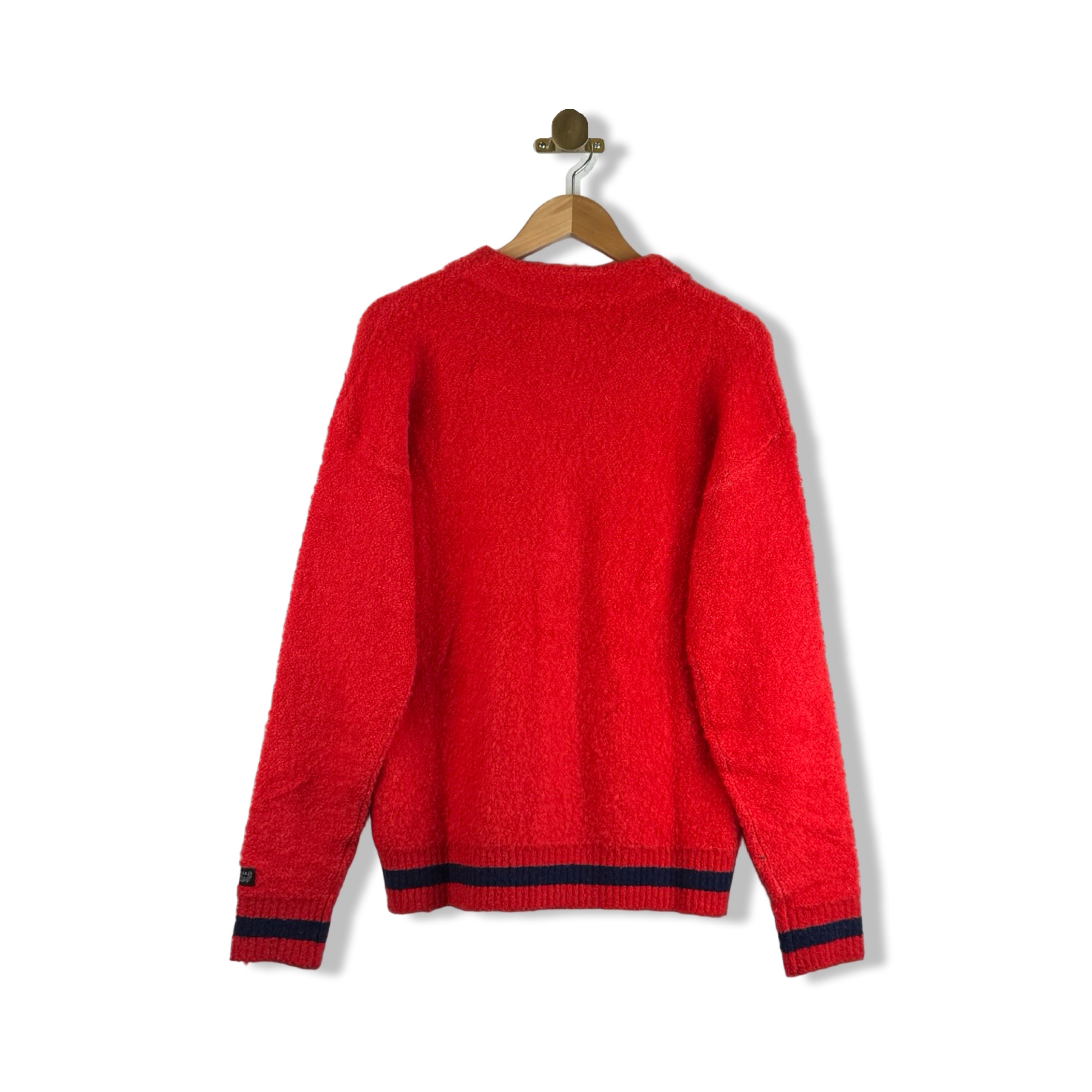 - Button up v-neckline cardigan with textured fabric. Relaxed fit.