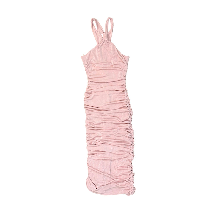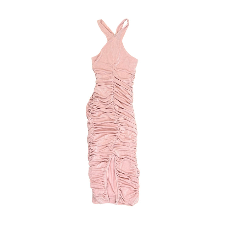 - Ruched dress with back zip closure. Size label missing, looks like an X-Small. Please check measurements for accurate sizing.