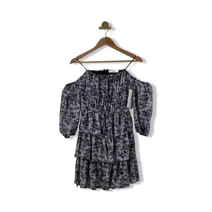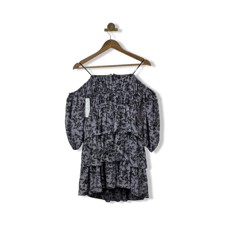 - This crinkle chiffon mini dress features an off-the-shoulder design and 3/4 length peasant sleeves, creating a chic and stylish look.